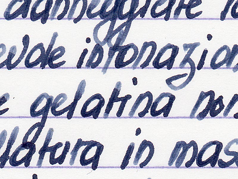 Il tono di colore, durante la scrittura, è un blu scuro piuttosto vivace che, gradualmente, diventa un blu-nero molto profondo, in cui si riesce ancora a distinguere la componente blu. Come dire: è un blu-nero deciso, né troppo blu, né troppo nero, con una vaga sottosfumatura rossiccia (che tuttavia bisogna proprio andare a cercarsi).