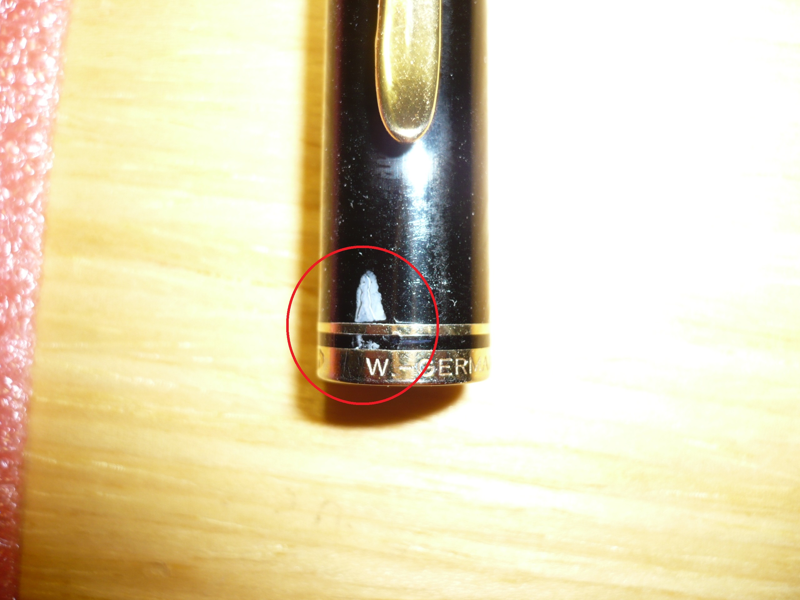 Togliere goccia di loctite cauta su cappuccio Pelikan M200