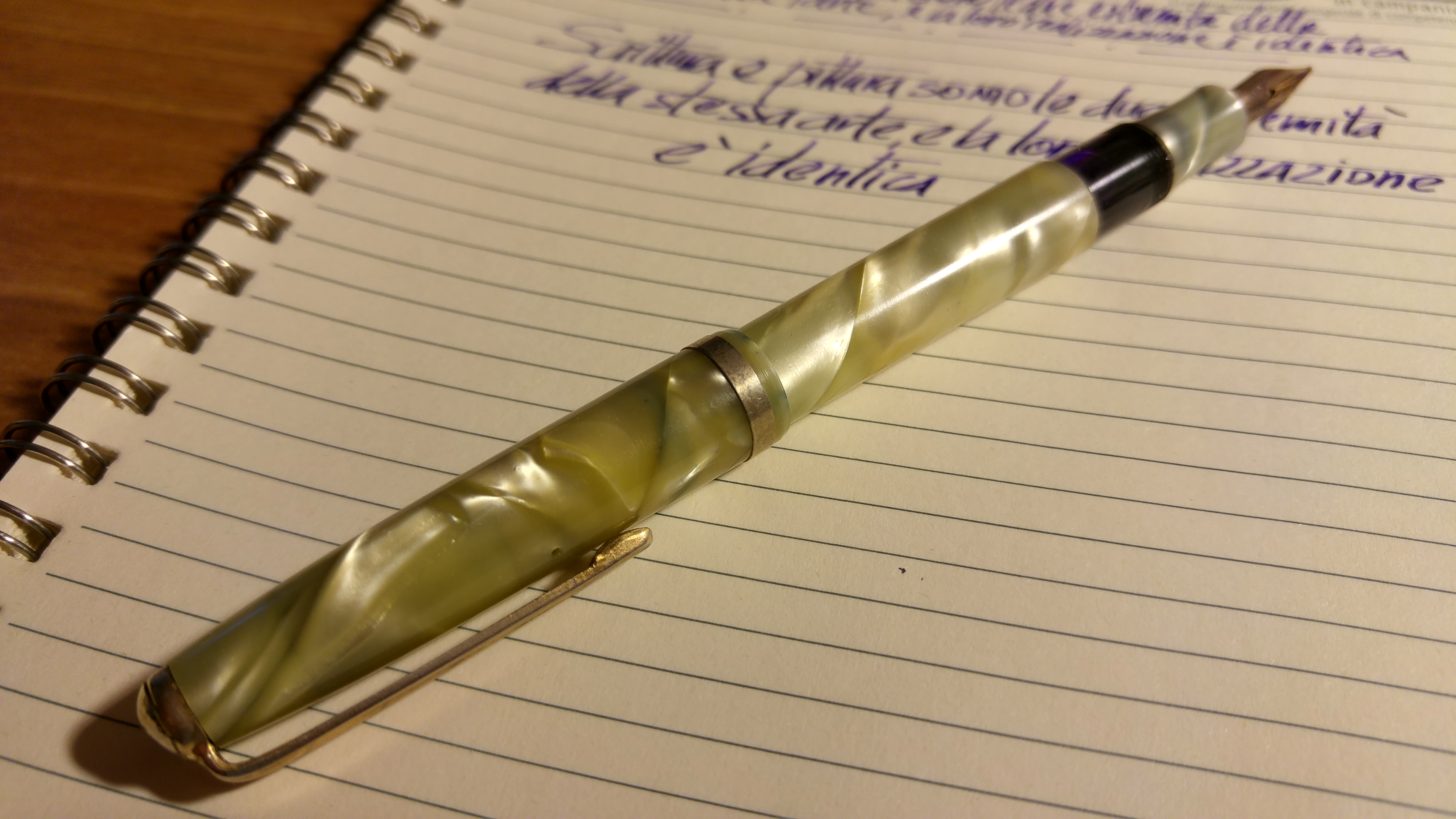 Questa è la mia prima penna regalo di 50 anni fa più o meno prima comunione non so che marca è ne modello so solo che sul pennino in oro c'è scritto aquila , ha una caratteristica dopo tanti anni che è stata abbandonata l'ho ritrovata e quando ho cominciato a scrivere è saltata la pallina di iridio e ha una scorrevolezza incredibile.