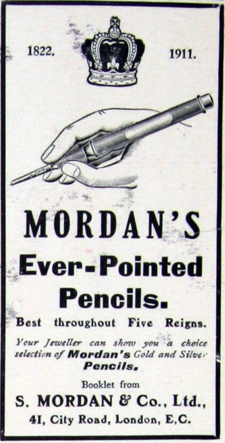 Come molti sapranno Sampson Mordan ( nato nel 1790 e deceduto nel 1843) è considerato, insieme al suo primo collaboratore Isaac Hawkins, l'inventore del mechanical pencil. Fu lui a depositare già nel 1822 il primo brevetto di una matita dotata di un meccanismo interno di propulsione e poi a produrne nel laboratorio di Londra, Castle Street, City Road, esemplari in argento ed oro di grande raffinatezza ed eleganza, ancora oggi particolarmente apprezzati, tanto che esistono veri club di appassionati e collezionisti . L'anno successivo, nel 1823, Sampson Mordan registrò il suo primo marchio dando vita ad una società con tale Gabriele Riddle, di cui restò socio fino al 1836. Da allora il mechanical pencil, che fosse agganciato alla catena di un orologio da tasca o al braccialetto di una signora che dovesse aggiornare il proprio carnet di ballo, divenne oggetto in gran voga ed elemento di distinzione nella buona società.