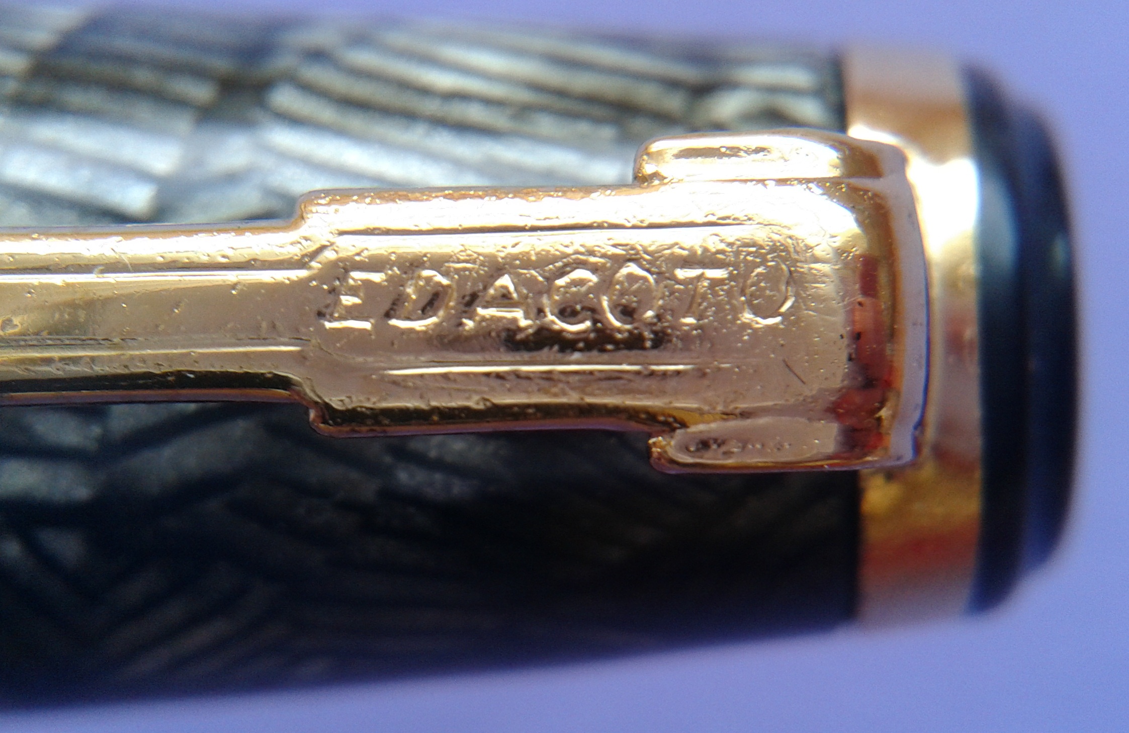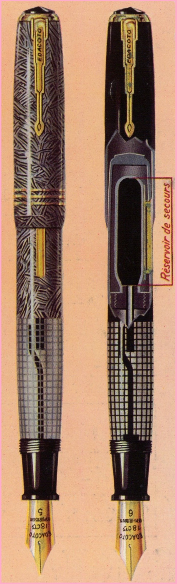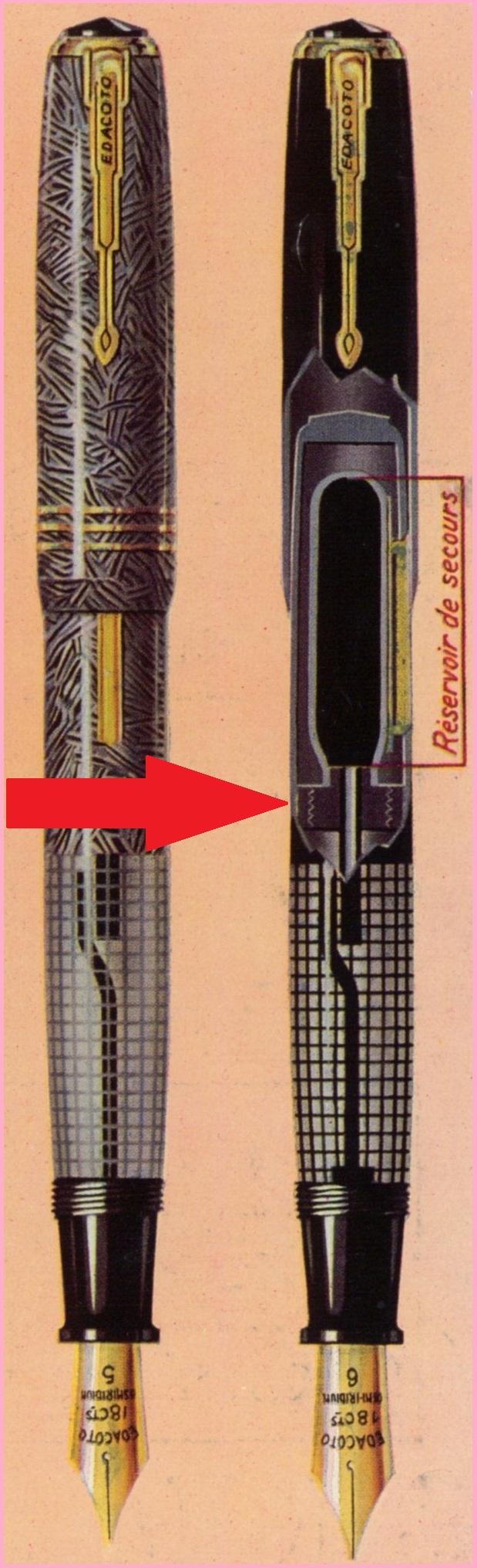 in quanto il sistema Super Edacoto può dirsi ispirato al sistema Ink-Vue della Waterman (1935), che utilizzava una levetta per comprimere il gommino posteriore tipico di tale sistema.