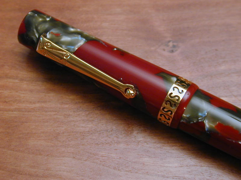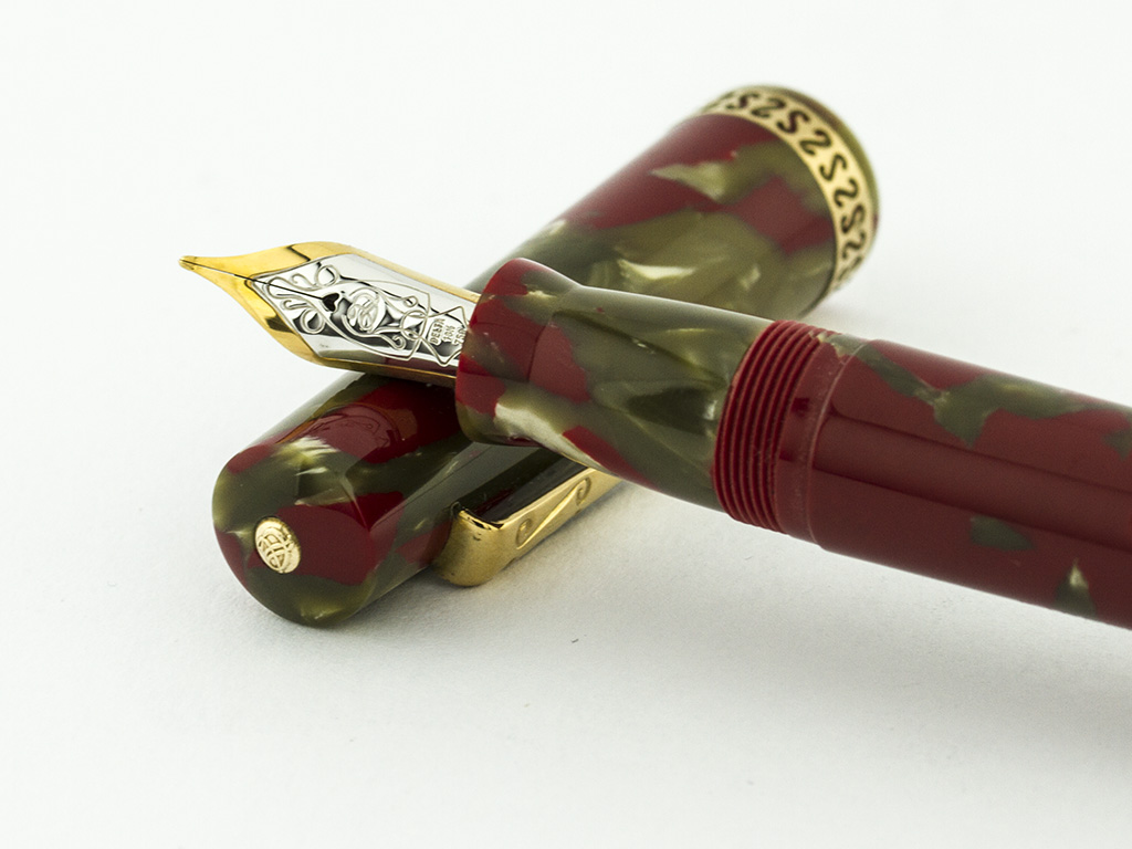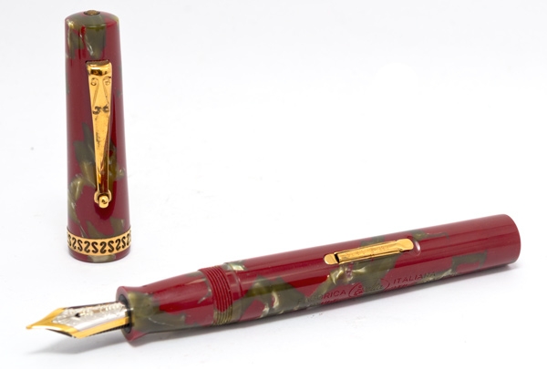 La Delta Pompei rossa risale al 1996. Venne prodotta in 1600 esemplari. Il materiale è la celluloide e il caricamento a leva.