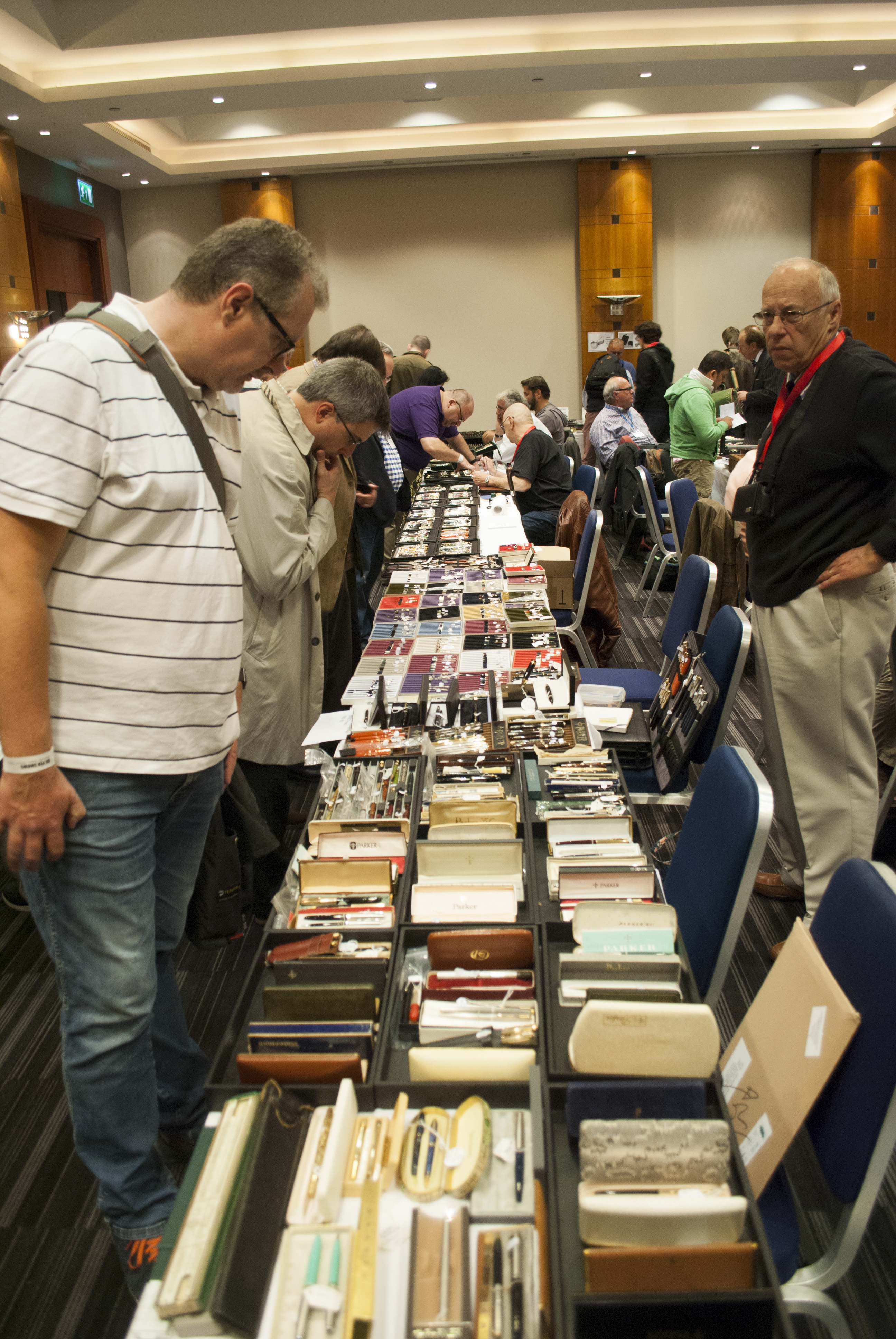 E qui lo sconforto che più tardi, a pranzo, con gli altri geek metteremo sotto il nome di “Vintage gate”: in giro per mercatini con Massimo e Alfredo, i miei maestri Bonnie e Clyde (lascio al lettore il piacere di attribuire all’uno o all’altro il personaggio che più gli si addice) abbiamo commesso furti nei confronti di ignari bancarellisti della domenica il cui unico reo era quello di ritrovarsi tesori da scrittura sul tavolo ignorandone il valore effettivo, questo però ha poco a che vedere con il fatto che in quella sala fossero esposti veri rottami il cui prezzo più basso si aggirava mai sotto le 100 sterline inglesi. Va da se che poi le penne in perfette condizioni si vendessero a multipli della cifra sopra indicata.