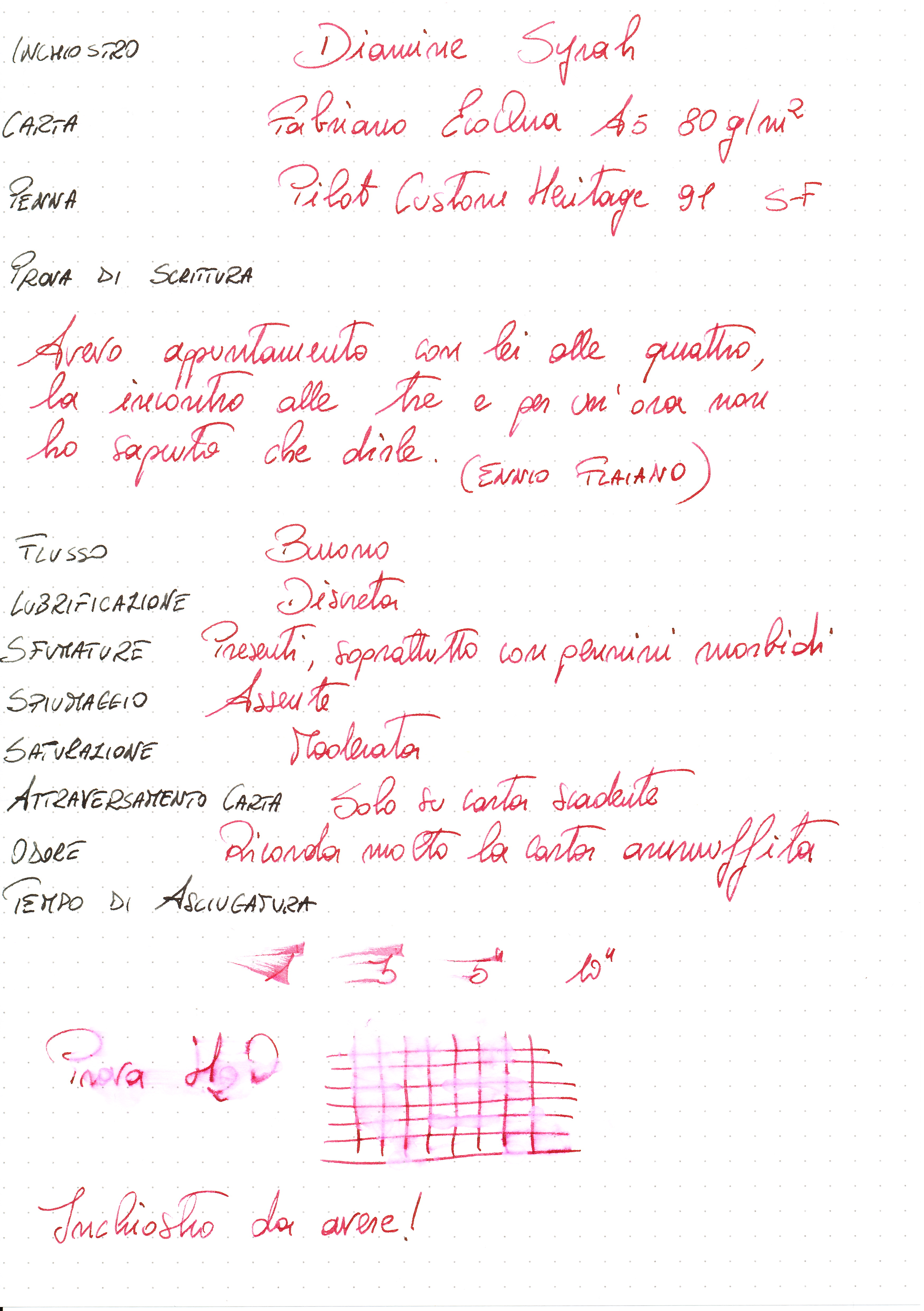 Rispetto all'immagine, l'inchiostro è un poco più scuro e saturo. Ha le medesime tonalità del Syrah siciliano.
