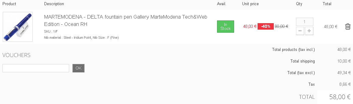 MaPe ha scritto:Sarà che ho un debole per il blu, ma sinceramente questa è più bella della Federico per gusto personale. Ottimo acquisto :thumbup: (Per curiosità sono andata a cercarla su internet, ho trovato un sito che la vende a 48€ non è un po' poco? :crazy: )