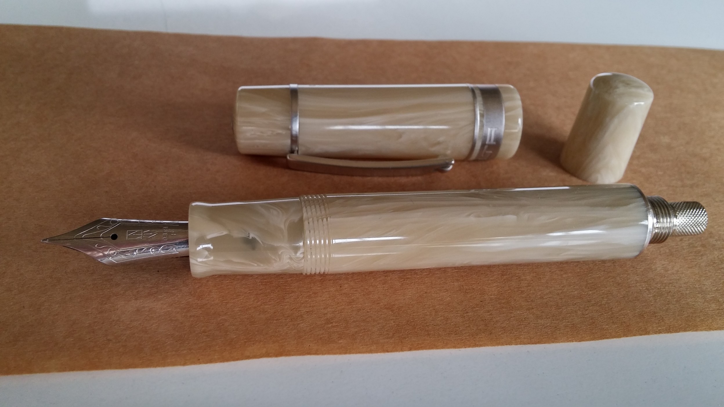 Il fusto della penna è diviso come nella Federico in tre parti: gruppo pennino, barrel, e tappo copri converter.
