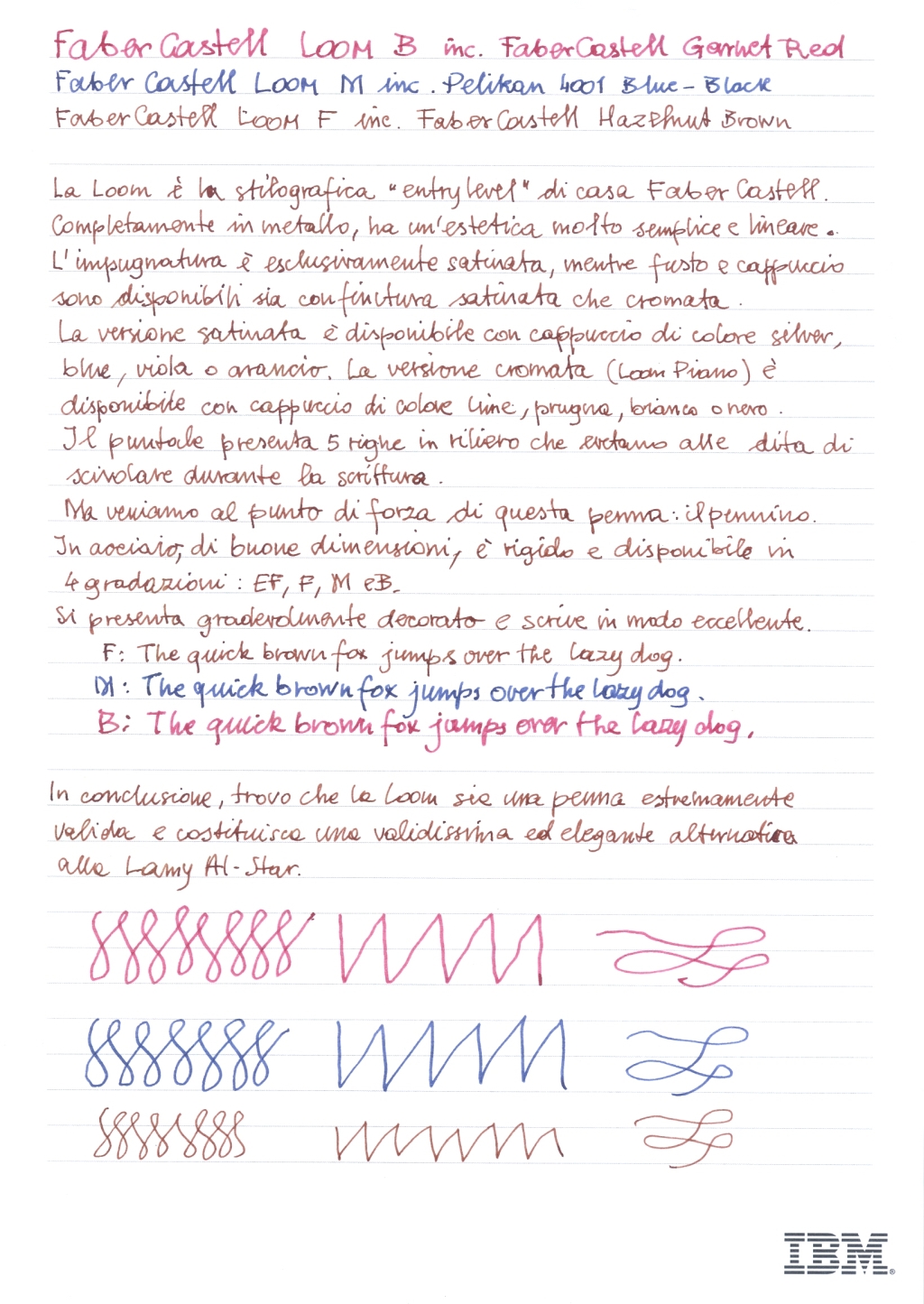 Grazie per la bella recensione (la grafia è legibilissima), bello anche il blocco marchiato IBM.