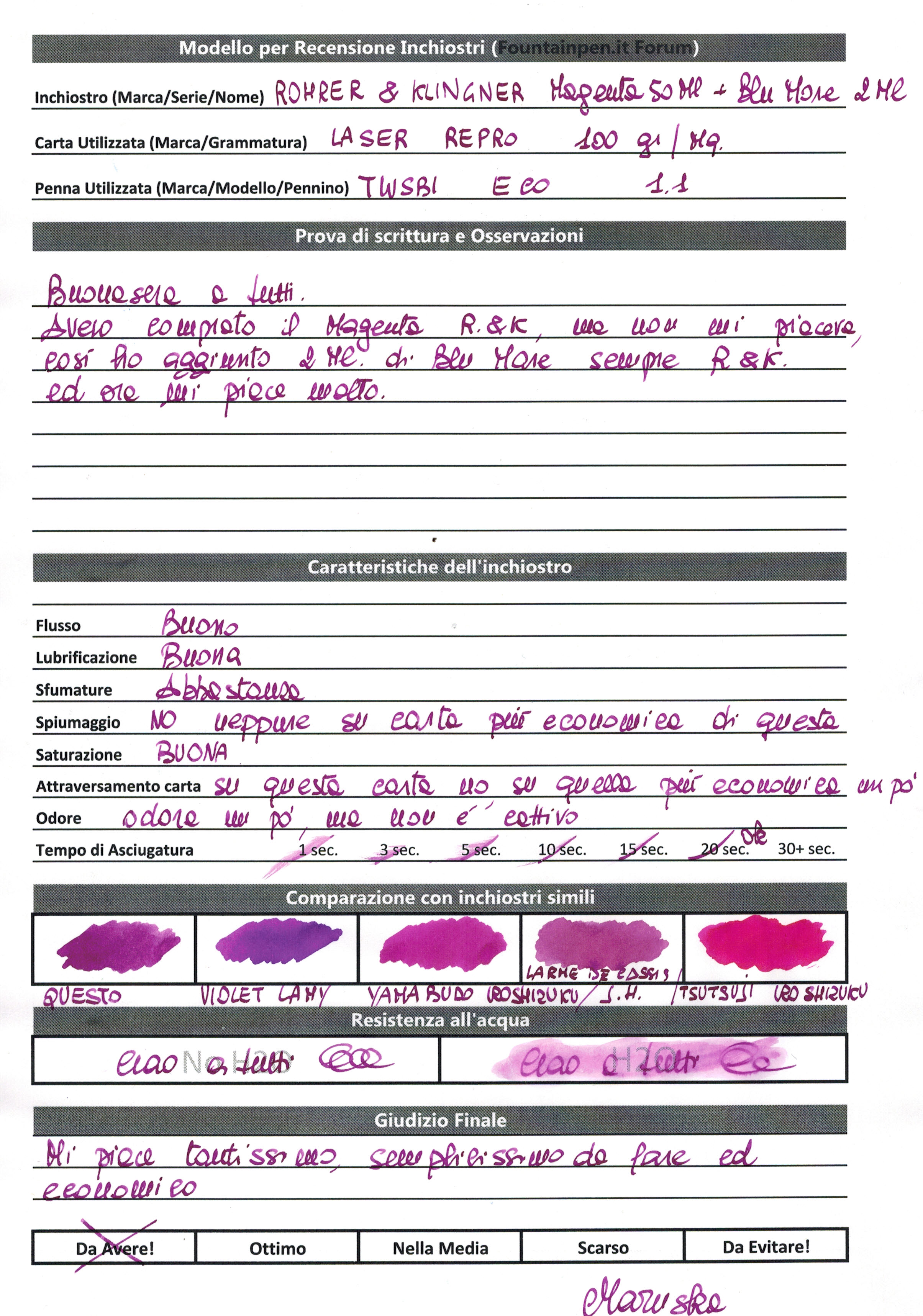 Buonasera a tutti, non so se posso recensire questo inchiostro, perché non esiste, l'ho fatto io, sapendo che i R. & K. posso essere mescolati tra loro, a parte il Sepia, lo Scabiosa e il Salix.