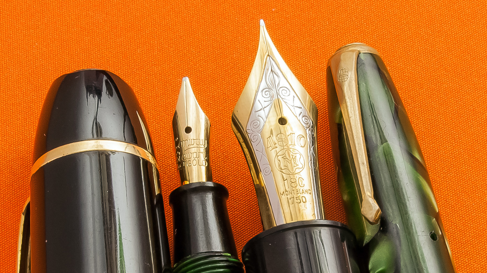 The Namiki Emperor next to the world's smallest fountain pen, a Waterman doll pen. Yes, both will be reviewed, children :-).