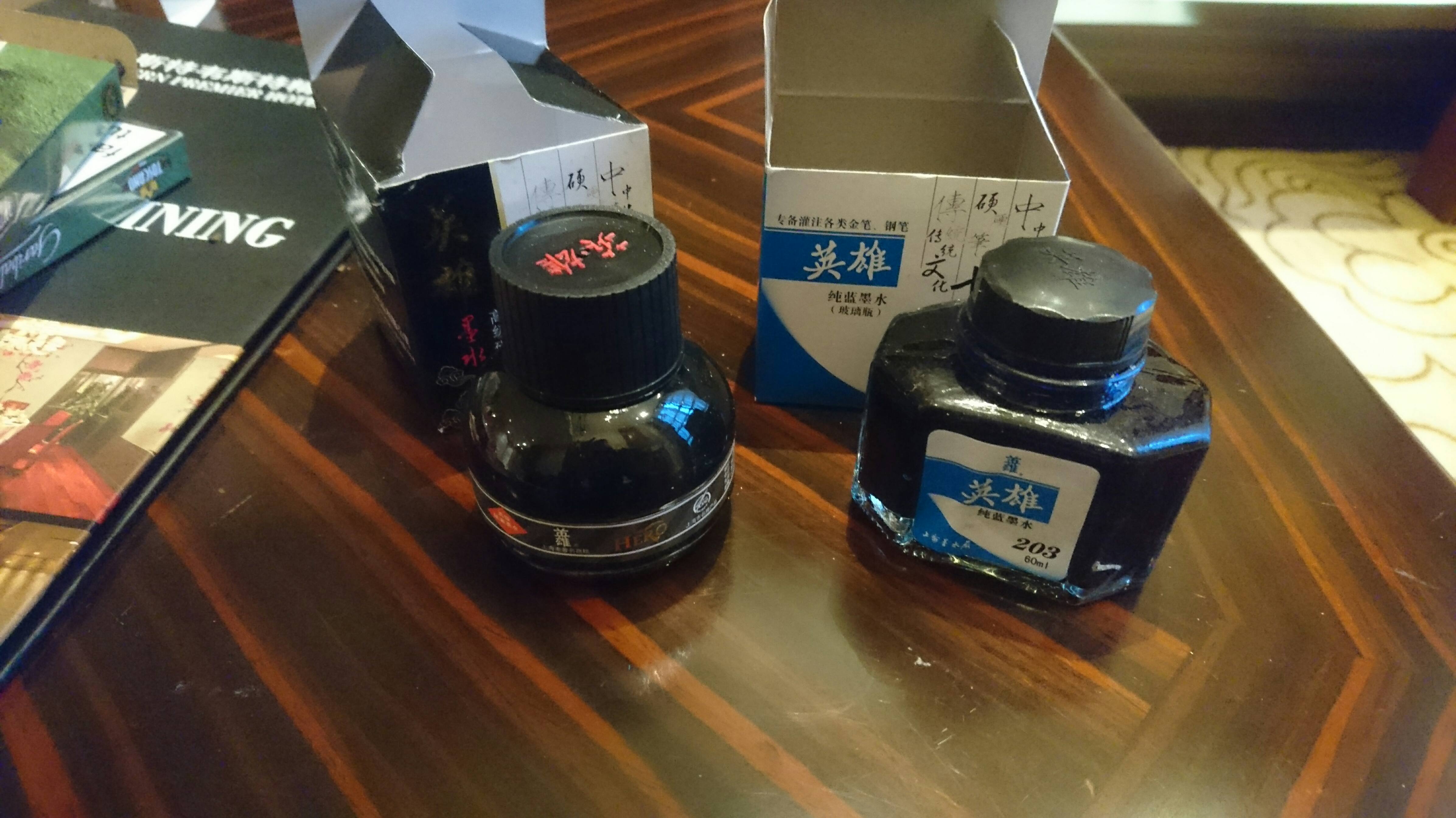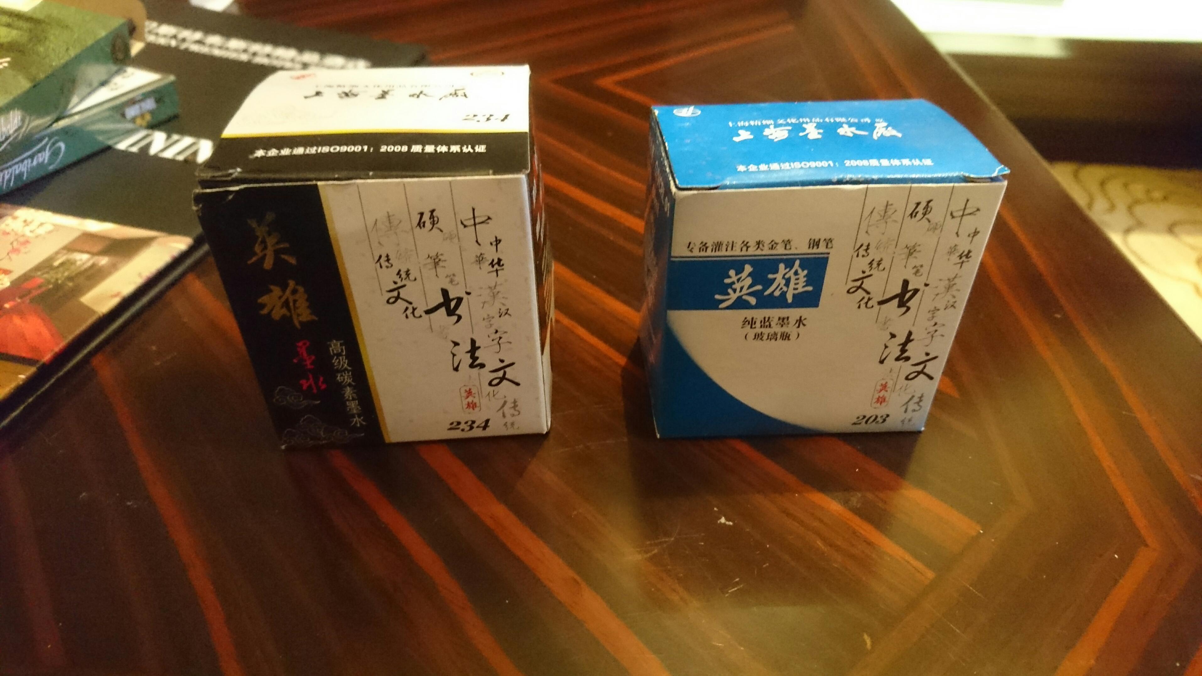 Oggi ho speso 1.30E. per questi due inchiostri Hero (un blu lavabile ed un nero). In realtà non sono sicuro che vadano bene per le stilografiche, ma ad occhio dovrebbero.