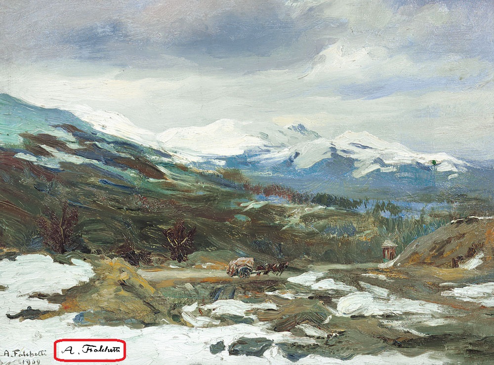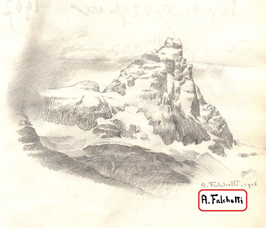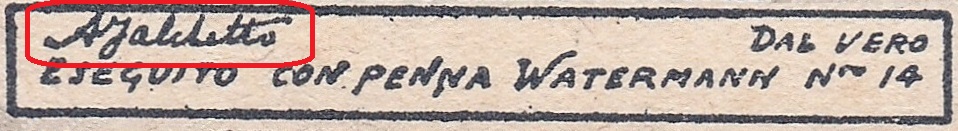 In essa la firma dell’autore del disegno [Alberto Falchetti (1878 – 1956), rinomato artista piemontese, potrebbe storicamente e stilisticamente essere l’autore dei disegni, ma le sue firme su opere del 1906 appaiono differenti…] precede un tremendo eppure non inconsueto errore di ortografia (due “N” in Waterman in luogo di Waterman’s, in un malriuscito connubio di inglese e tedesco)!! :mrgreen: