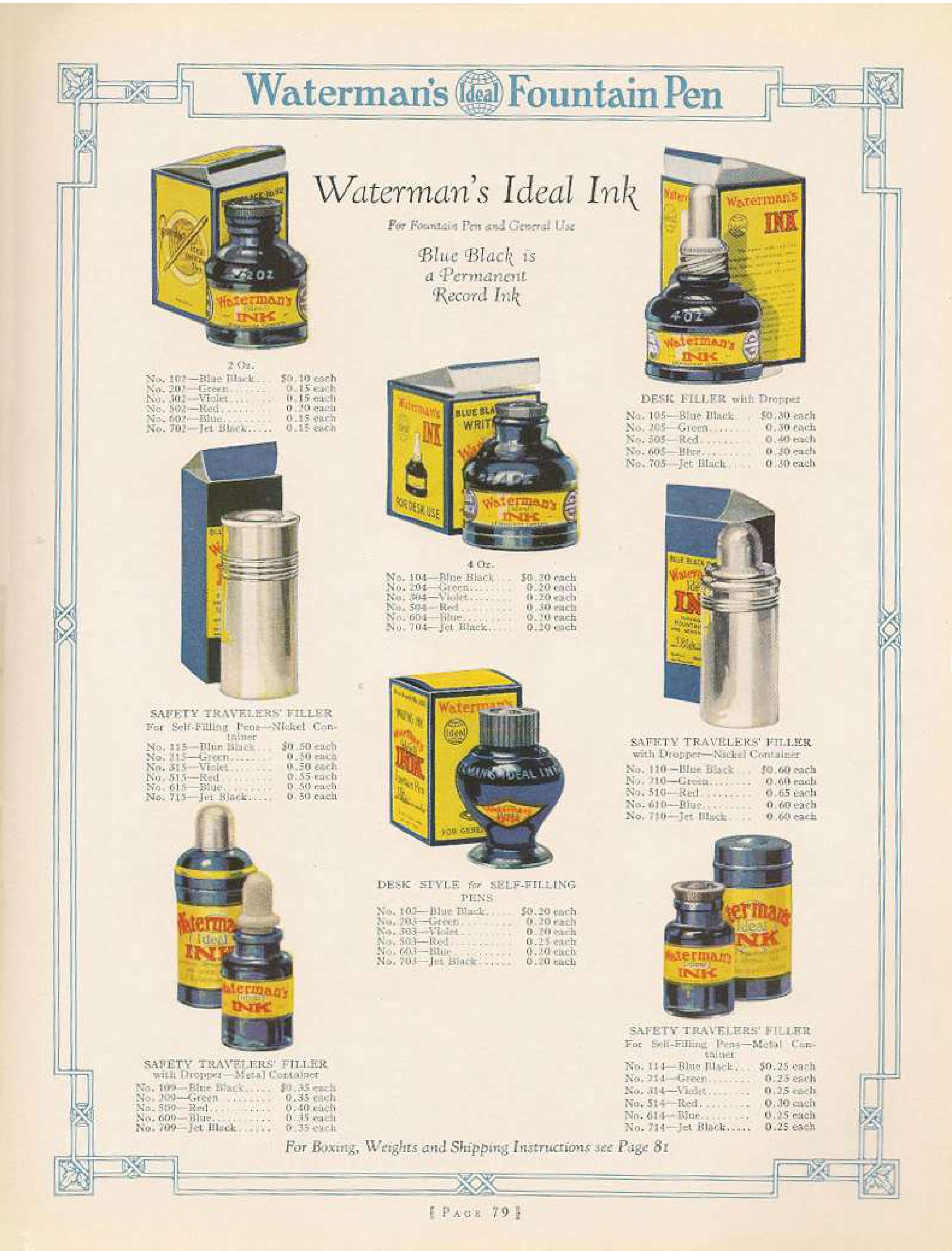 Dopo aver allegato la pagina del Catalogo Waterman del 1925