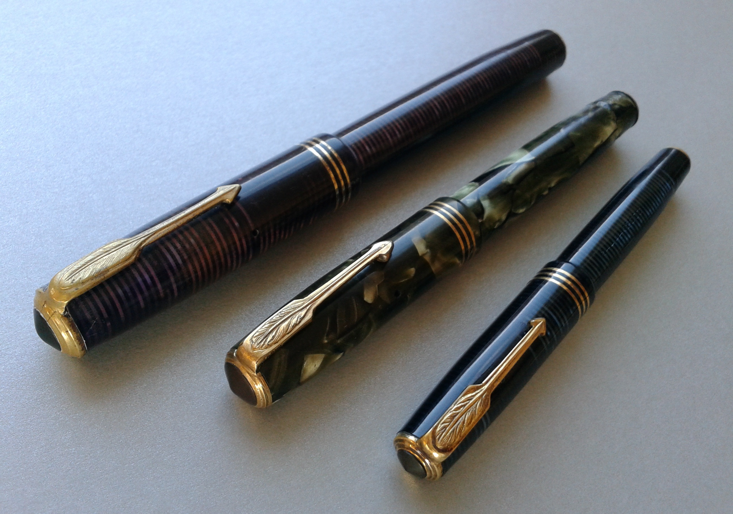 Questo modello liscio (ancora senza nome a differenza del modello faccettato che fu chiamato Imperial nel 1936) è un chiarissimo omaggio alla “Vacumatic” che Parker immise sul mercato nel 1933: omaggio solo formale, tuttavia, poiché la celluloide (sempre di primissima qualità) non è trasparente ed il caricamento è un semplice (ma sempre affidabile) pulsante di fondo.