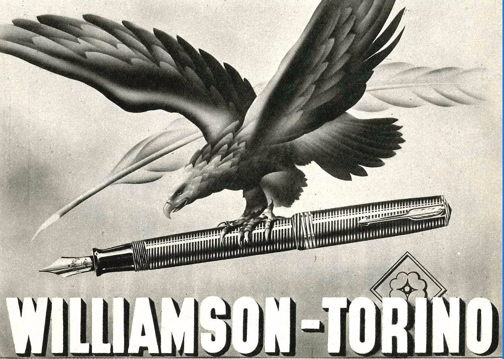 ...è a mio avviso, come ho già scritto, straordinaria per essere l'unico fermaglio che ingloba in sè una vera penna d'oca (quill), per quanto stilizzata. Non solo di una freccia quindi si tratta (come per la rivoluzionaria clip introdotta da Parker), bensì di un vero e proprio strumento di scrittura all'interno della sagoma di una freccia, come conferma la pubblicità Williamson (dal 1939):