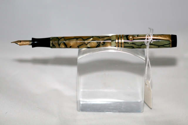 Un particolare importante è la colorazione del fusto, senz'altro virata rispetto all'originale (si guardi il tappo). Se avete penne in celluloide che prevedono un sacchetto, e non le usate, smontatelo. E' infatti lo zolfo rilasciato dal sacchetto a causare lo scurimento del fusto.
