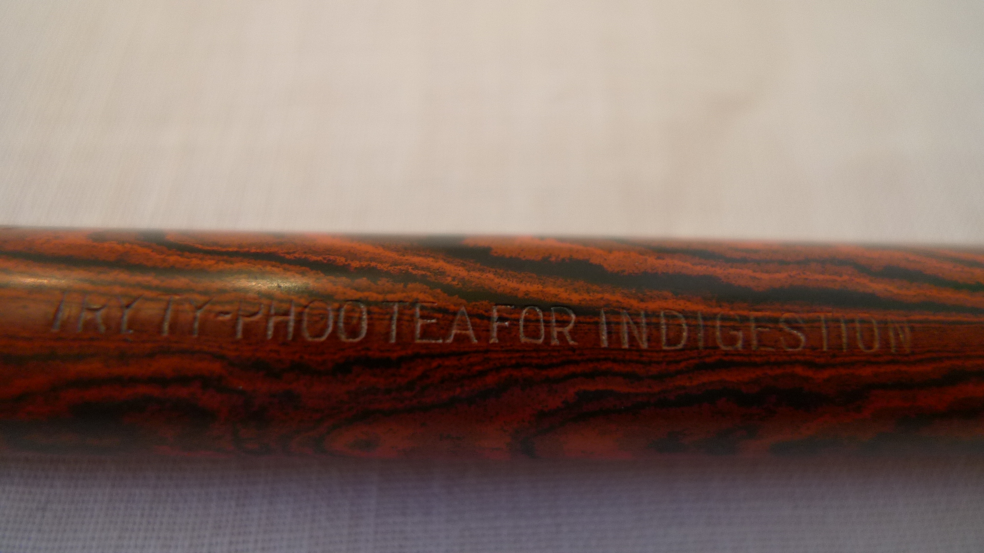 La scritta sulla penna l'hai letta bene e si riferisce proprio ad una azienda, la TY-PHOO, oggi ancora in attività come TYPHOO fondata nel 1903, che importa tè in Inghilterra.