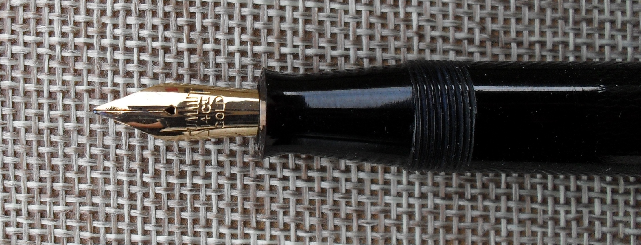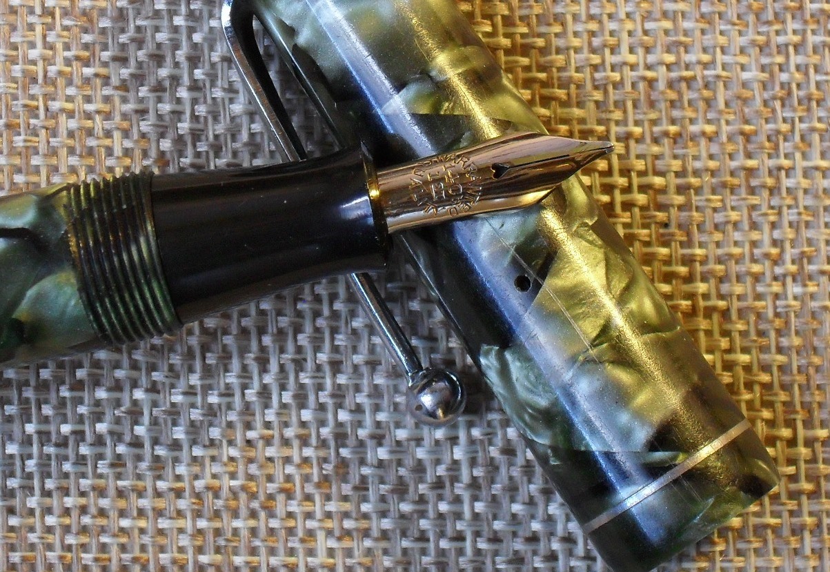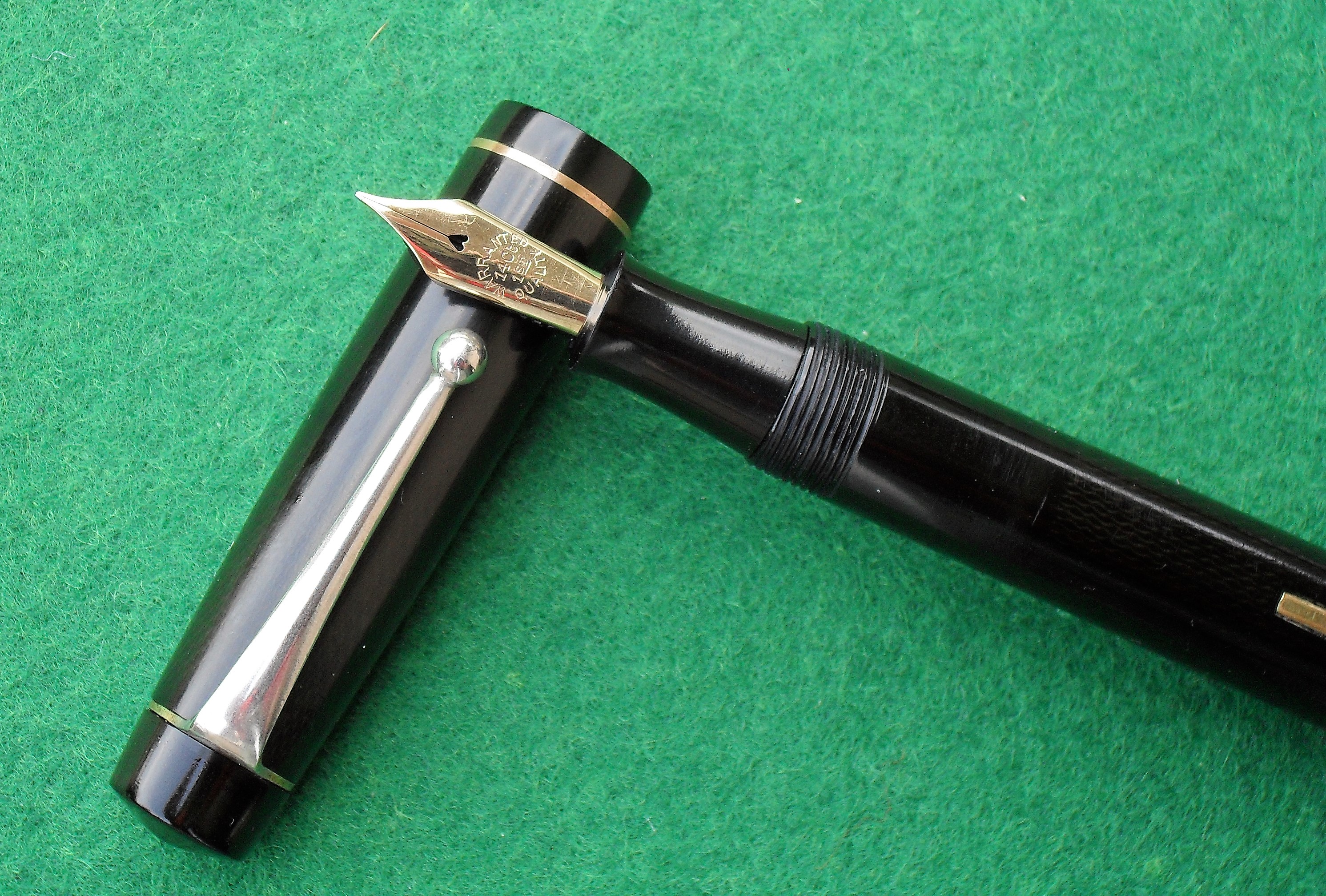 Il pennino, prodotto da Summit, non è flessibile, ma neppure rigido: come spesso capita con i pennini inglesi coevi, è dotato di una buona molleggiatura. La scrittura scivola via molto piacevolmente, in modo preciso e con un ottimo flusso, mai eccessivo ma neppure magro. La penna si impugna molto bene ed è ottimamente bilanciata, anche con il cappuccio calzato. L’alimentazione è a levetta laterale: sistema semplice e pratico, anche in termini manutentivi.