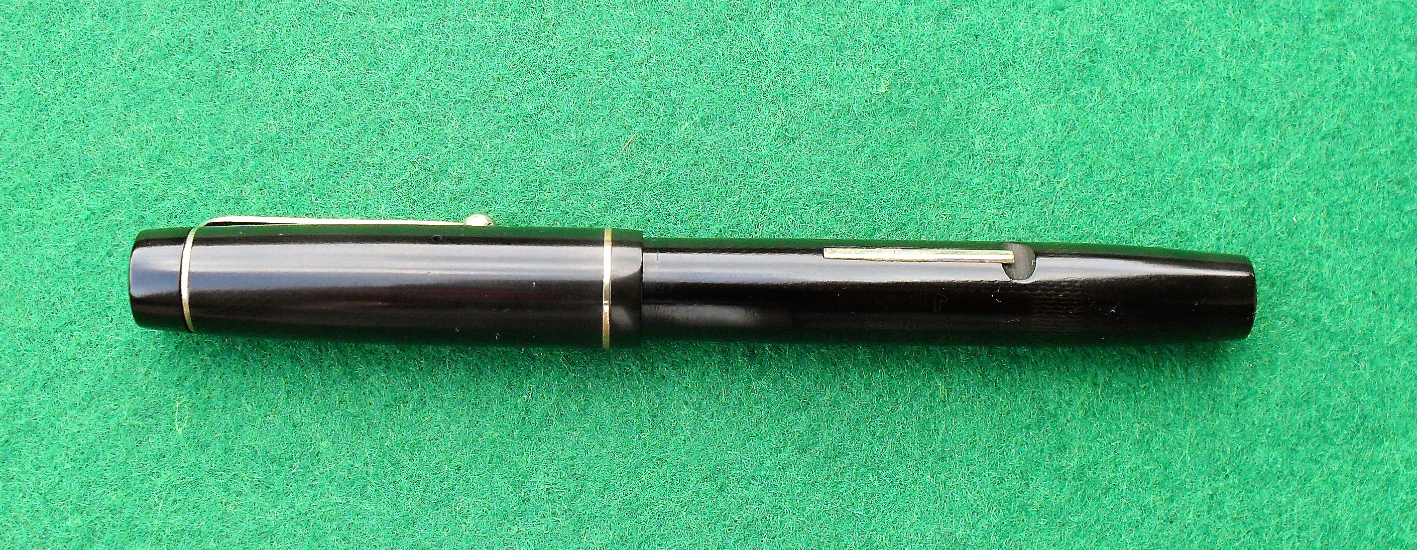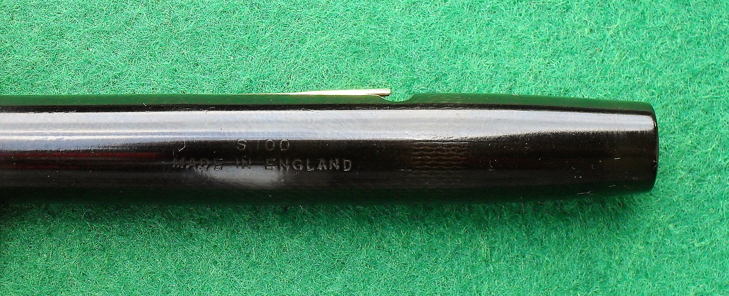 Il recente ritrovamento della penna che vedete sembra dimostrare che nella prima parte degli anni Trenta la S. 100, che allora non era destinata agli studenti e dunque non era ancora stata battezzata "Cadet", fu prodotta con pennino “warranted”, con la tipica incisione circolare Lang, finiture dorate e clip senza la scritta relativa al marchio.