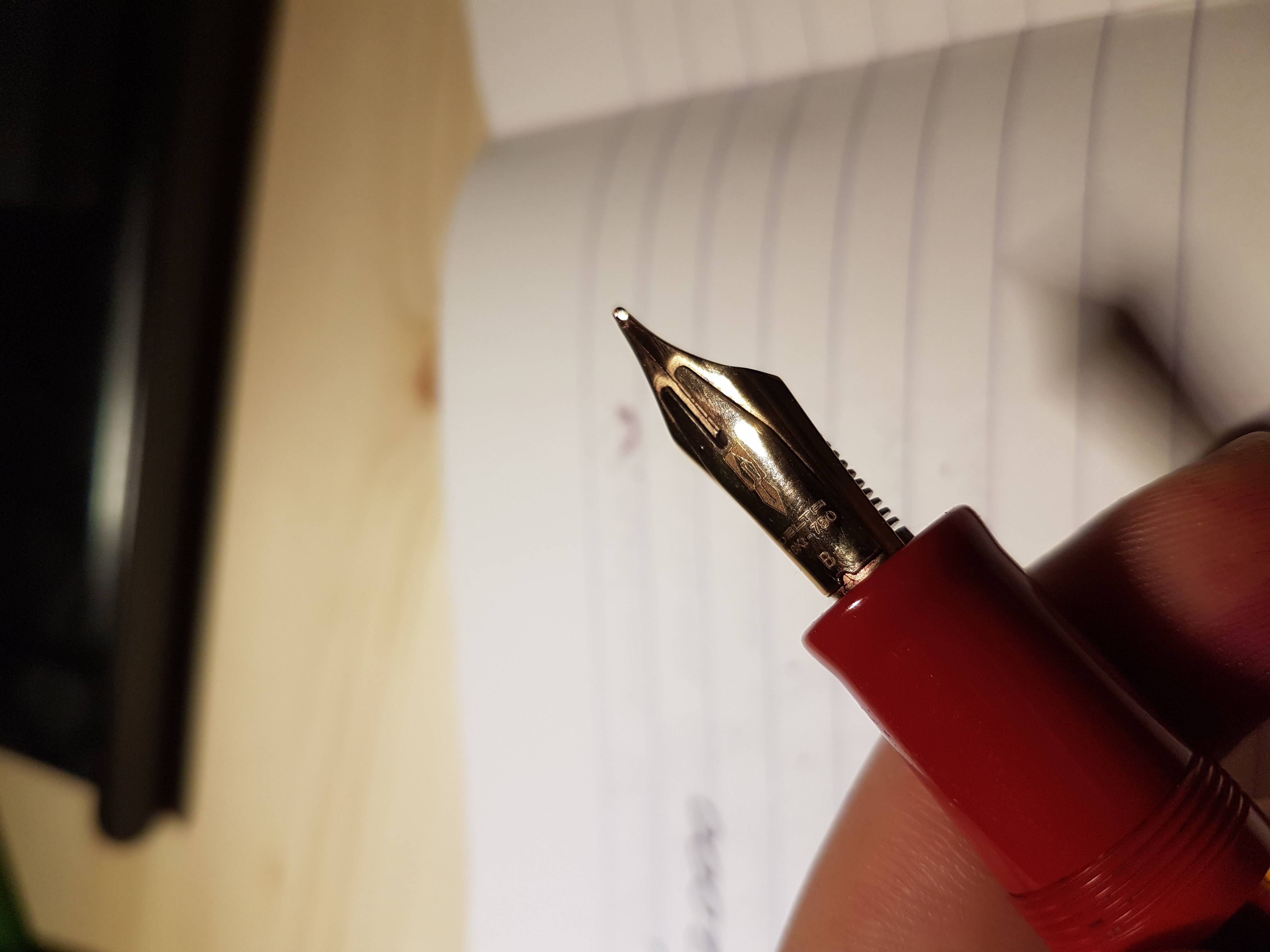 Seconda cosa, il pennino di taglia B presenta la punta non tonda pur essendo tecnicamente nuovo di fabbrica. Come se fosse pesantemente usato (o fosse passato dalle sapiente mani di Emanuele col micromesh :lol: ).