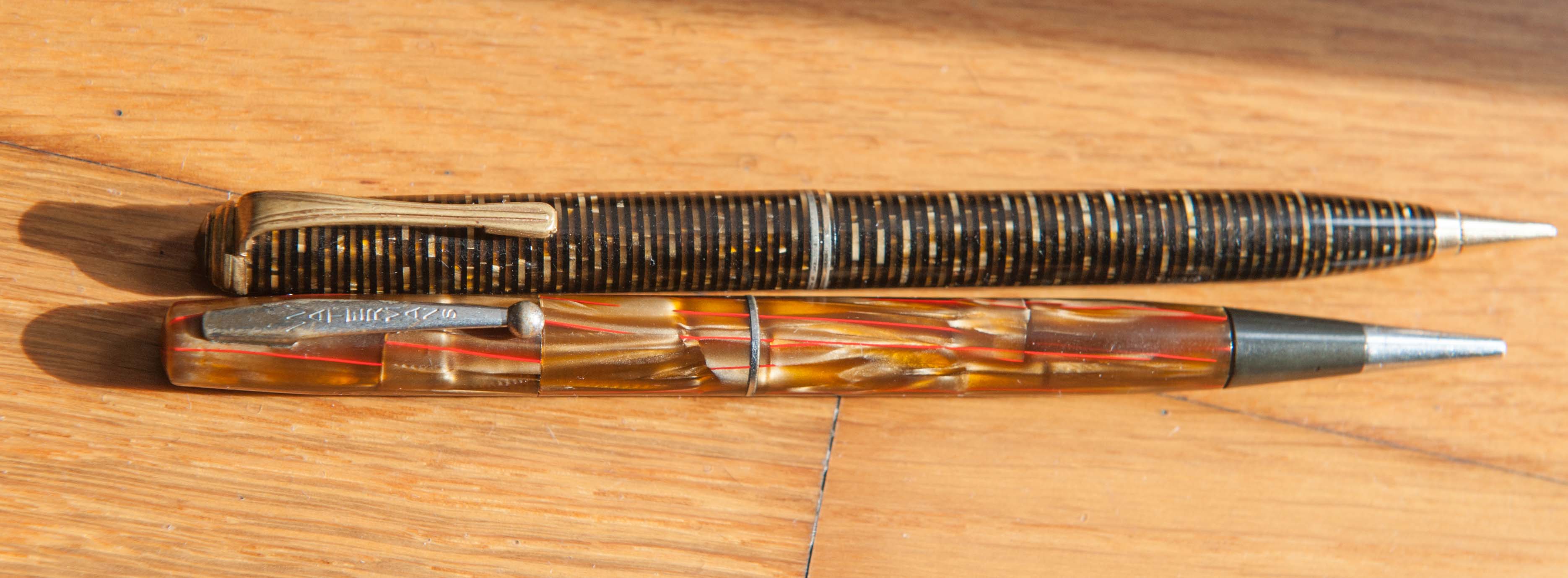 recentemente mi sono avvicinato al mondo delle matite meccaniche vintage, non avendone mai avuta una la mia conoscenza riguardo le mine si limita ai formati "moderni" 0.5 e 0.7 . Ora sono stato in alcune cartolerie (non specializzate in penne antiche) per cercare mine adatte alle matite meccaniche ma le uniche che ho trovato sono state le 0.9 che sono troppo sottili. Leggendo vari siti ho scoperto che dovrebbero esistere le 1.1 le 1.15 le 1.18 e le 1.2 ma queste misure sono introvabili nelle cartolerie. Ora, quale è la corretta misura per matite meccaniche come le mie (vedi foto allegata) una Waterman's e una Parker vacumatic? Dove posso trovarle? Se c'è qualcuno che in privato possa indicarmi un negozio sarei molto grato.