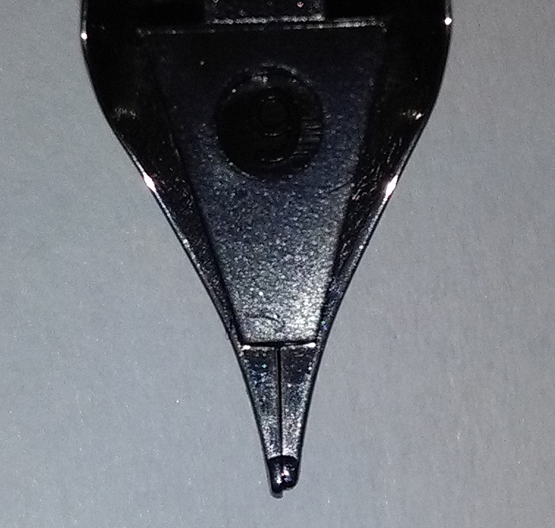 Non pare proprio che la differenza tra le punte possa derivare da un trauma: non ce n'è il minimo segno; se è nato così sembra incredibile ed è certo che la penna non è stata collaudata prima di essere messa in vendita.