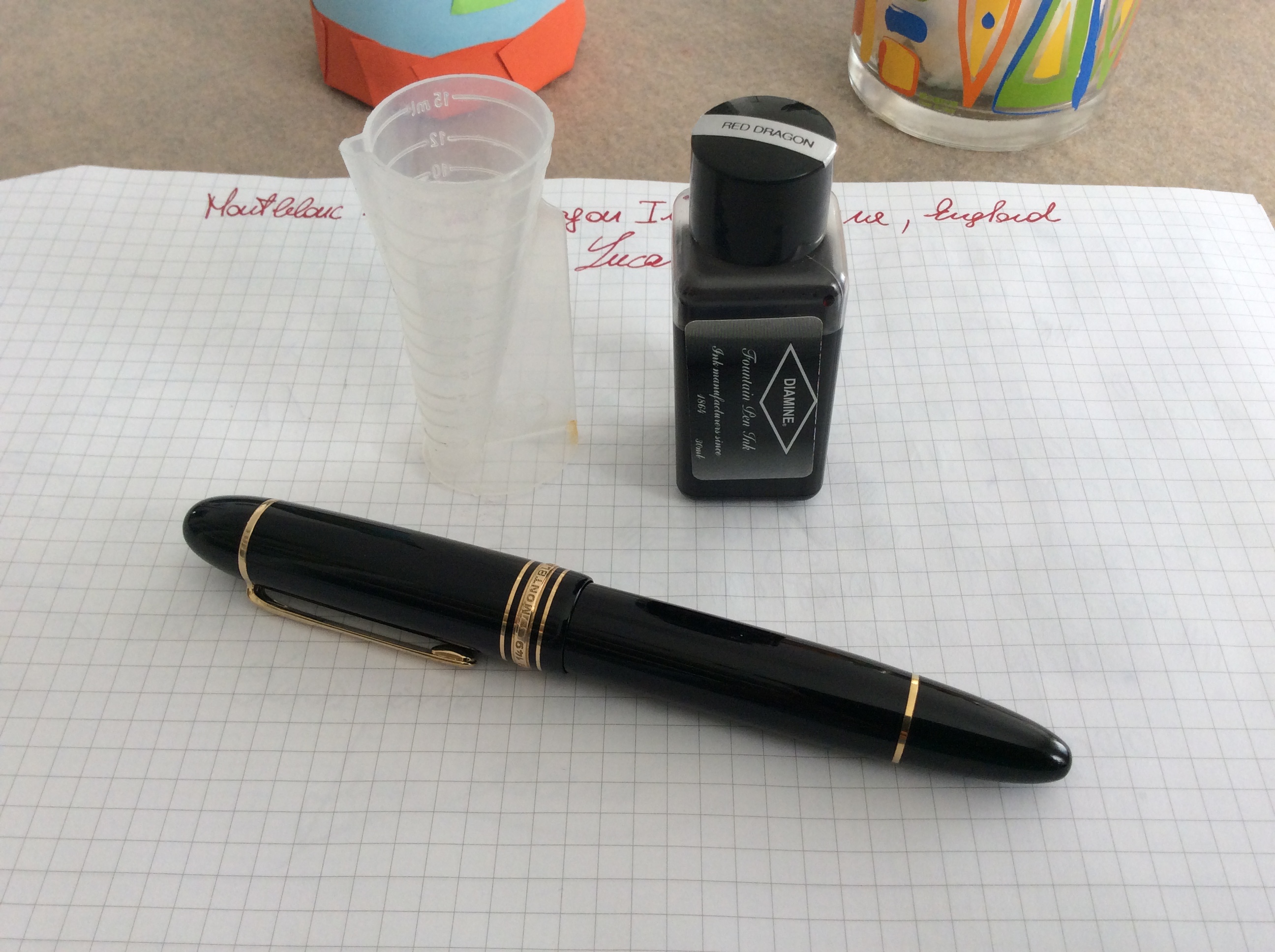 Ho sempre avuto problemi nella ricarica ad esempio delle Montblanc 149 con i boccettini Diamine da 30 ml. Ho avuto l' idea di usare un misurino che spesso si trova in coppia con vari insetticidi, ha anche una scala graduata in ml. così da avere anche l' idea di quanto inchiostro si stia caricando. Finalmente posso caricare tranquillamente tutte le penne dalla sezione grossa che non entravano nei Diamine!