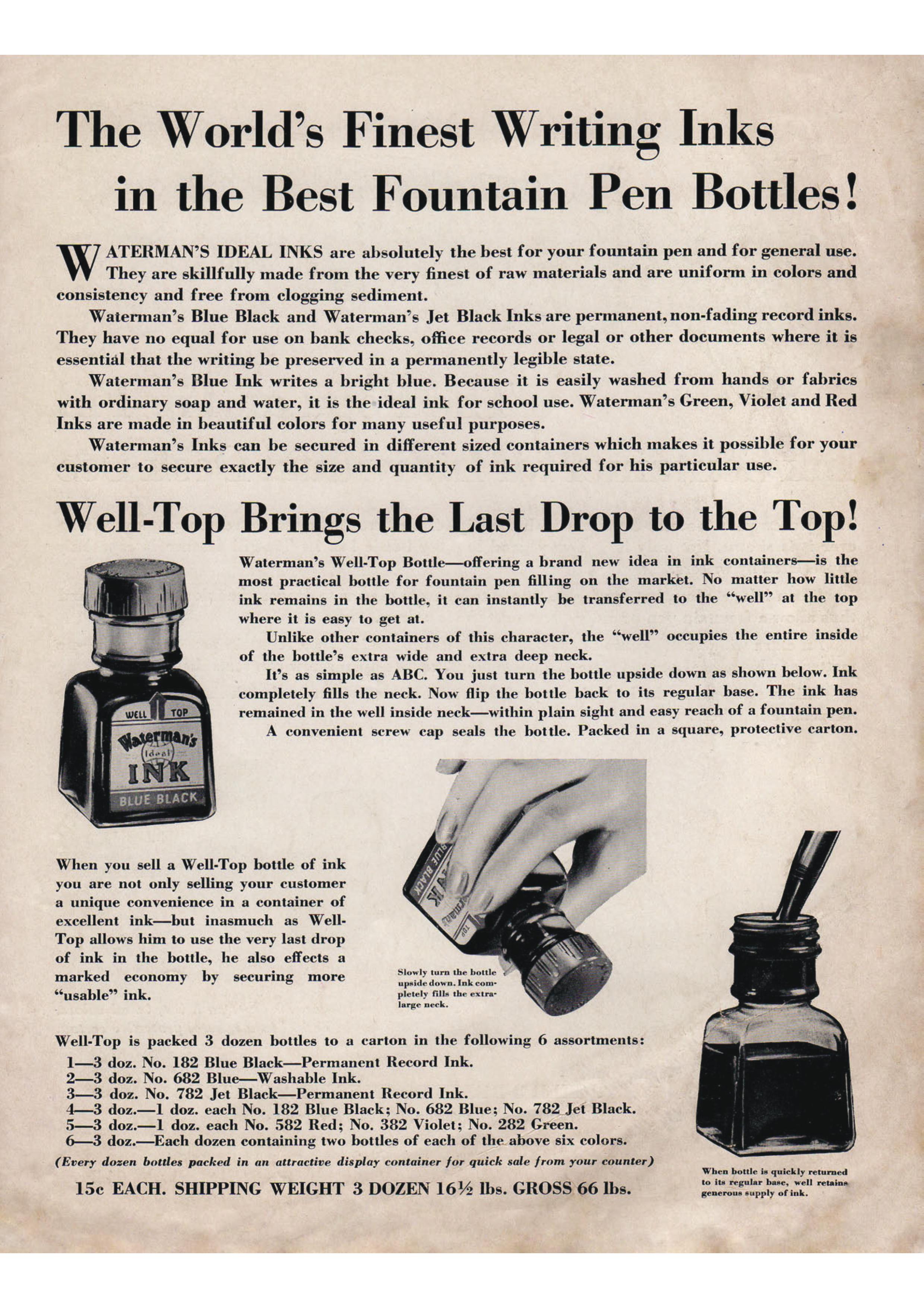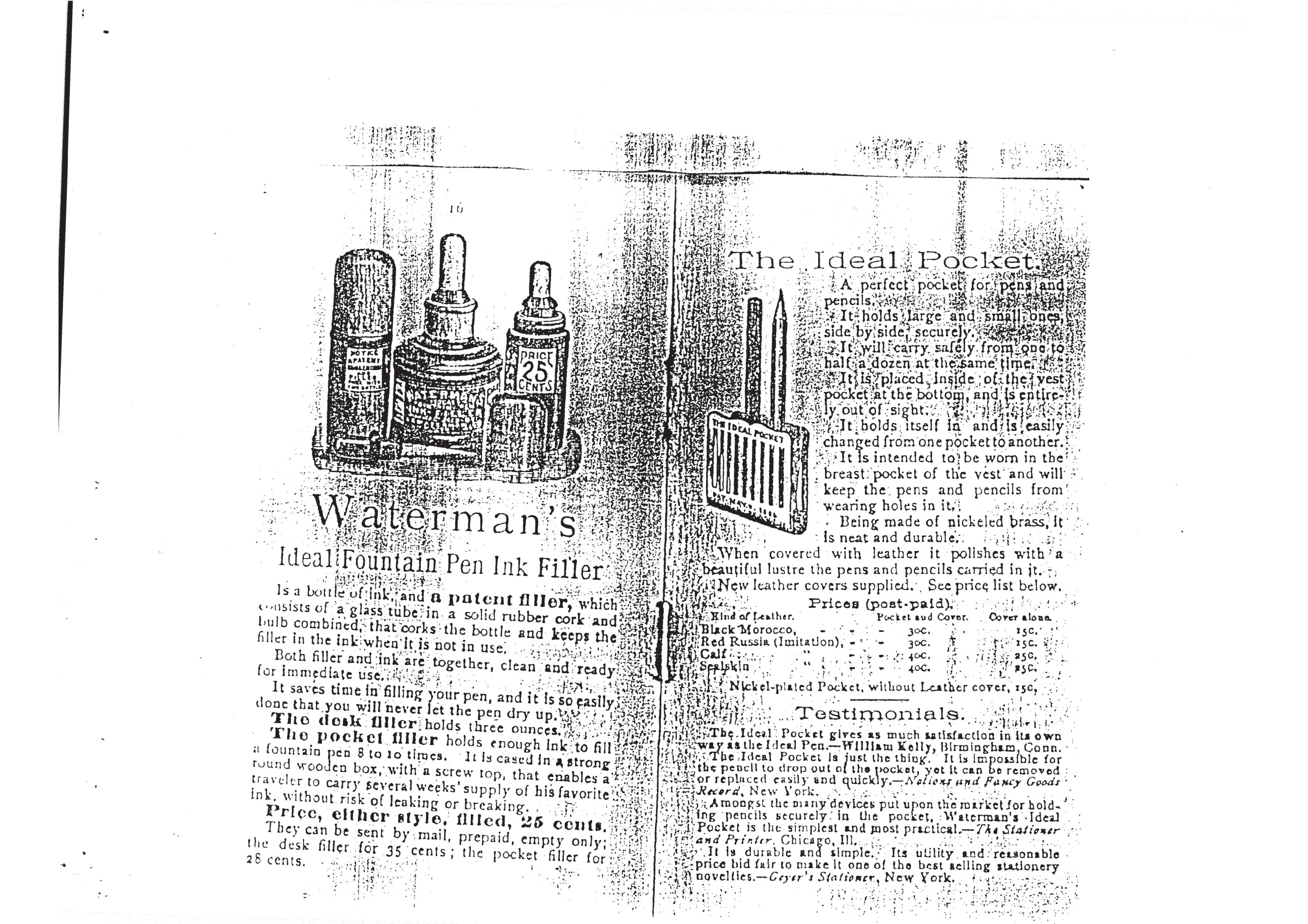 Prima boccetta direi proprio di no: per i primi 40 anni circa la Waterman ha utilizzato il tipo che si vede in questo Catalogo (presunto) del 1892.
