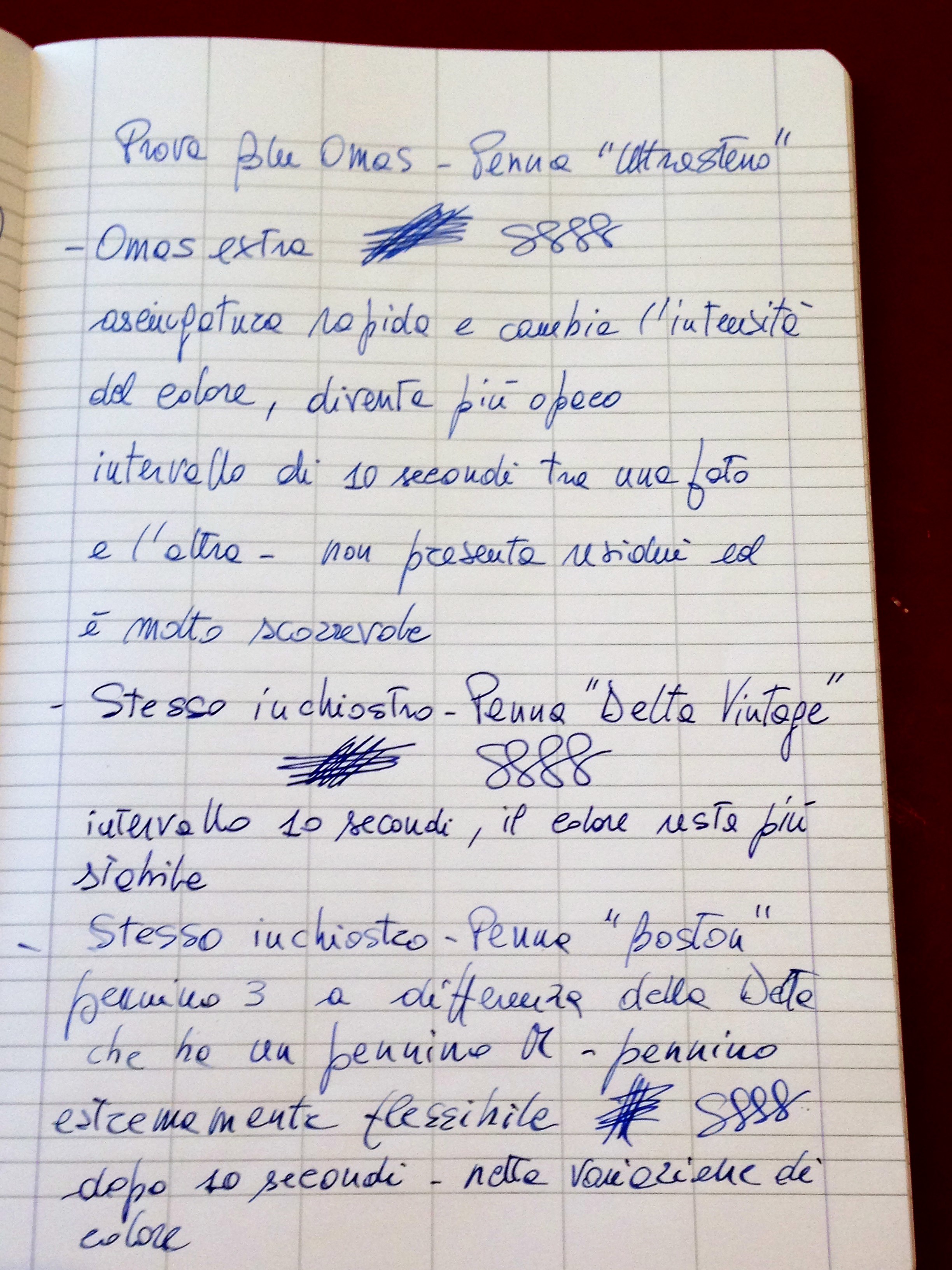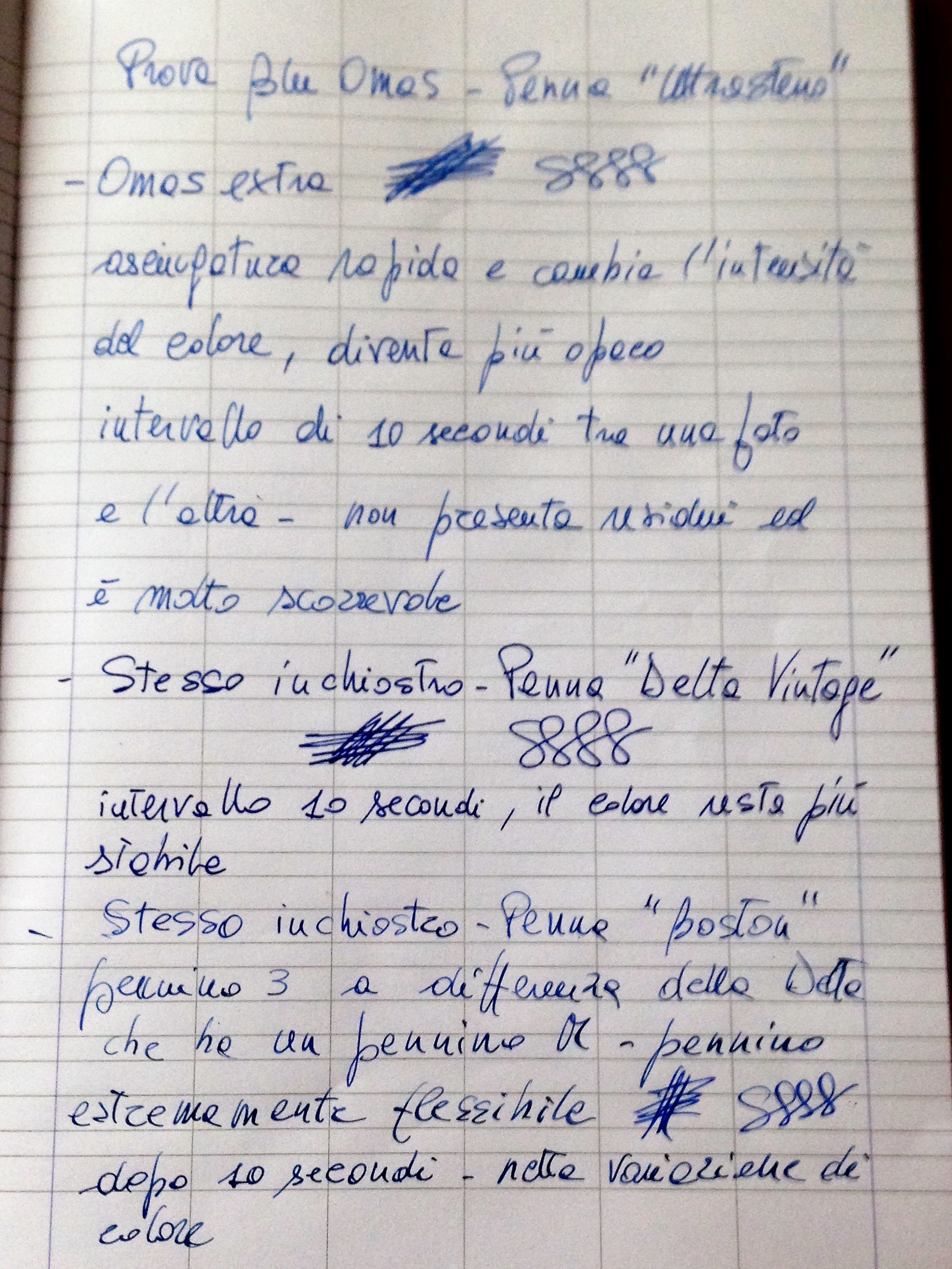 Le variazioni di colore dell'inchiostro da una penna all'altra sono notevoli, il buffo è quanto cambia la mia brutta calligrafia a secondo del pennino