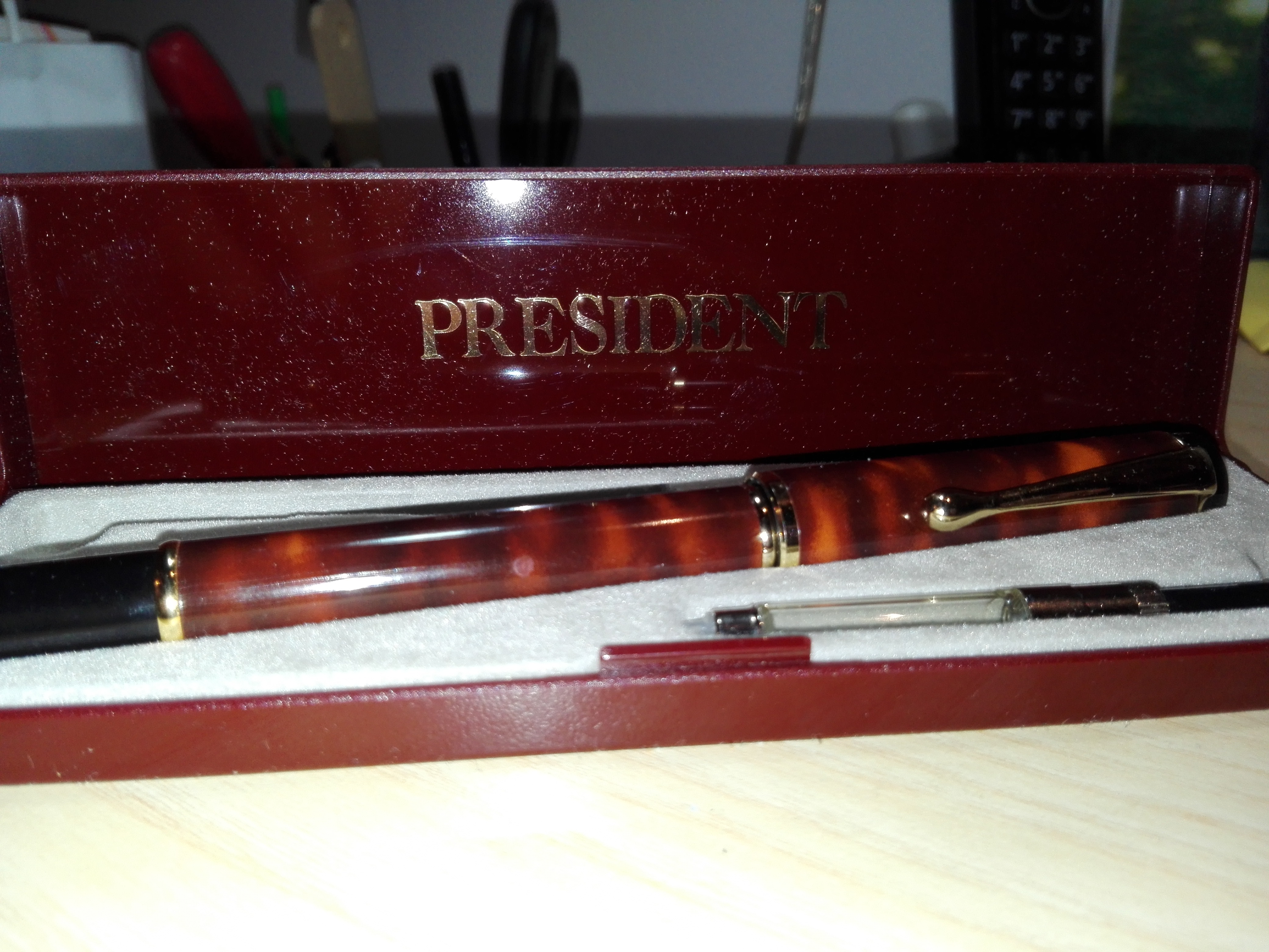 Salve, in un cassetto ho ritrovato questa penna che credo costruita negli anni 90'. Si tratta di una Marksman President di cui allego qualche foto.