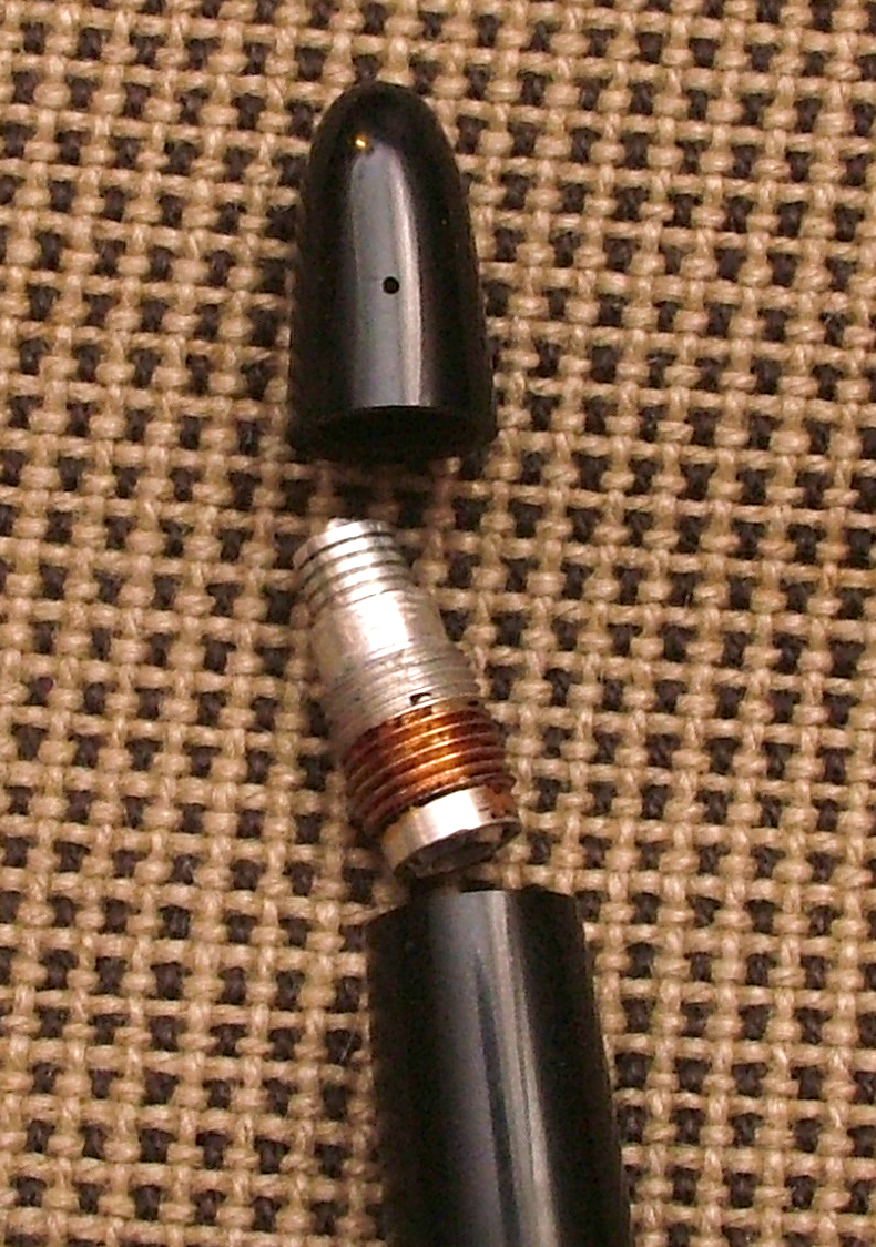 Probabilmente era un modello di transizione fatto in parte con pezzi dalle Vacumatic.zoniale ha scritto:La butto lì: uno stock di corpi penna (e/o materiali e macchinari atti a produrli) con la predisposizione per il meccanismo vacumatic, ovvero la filettatura in fondo al corpo?maxpop 55 ha scritto:... non ho capito perchè la Parker si è complicata la vita, va bene la parte che si avvita, ma ... perchè non far uscire normalmente il pulsante?