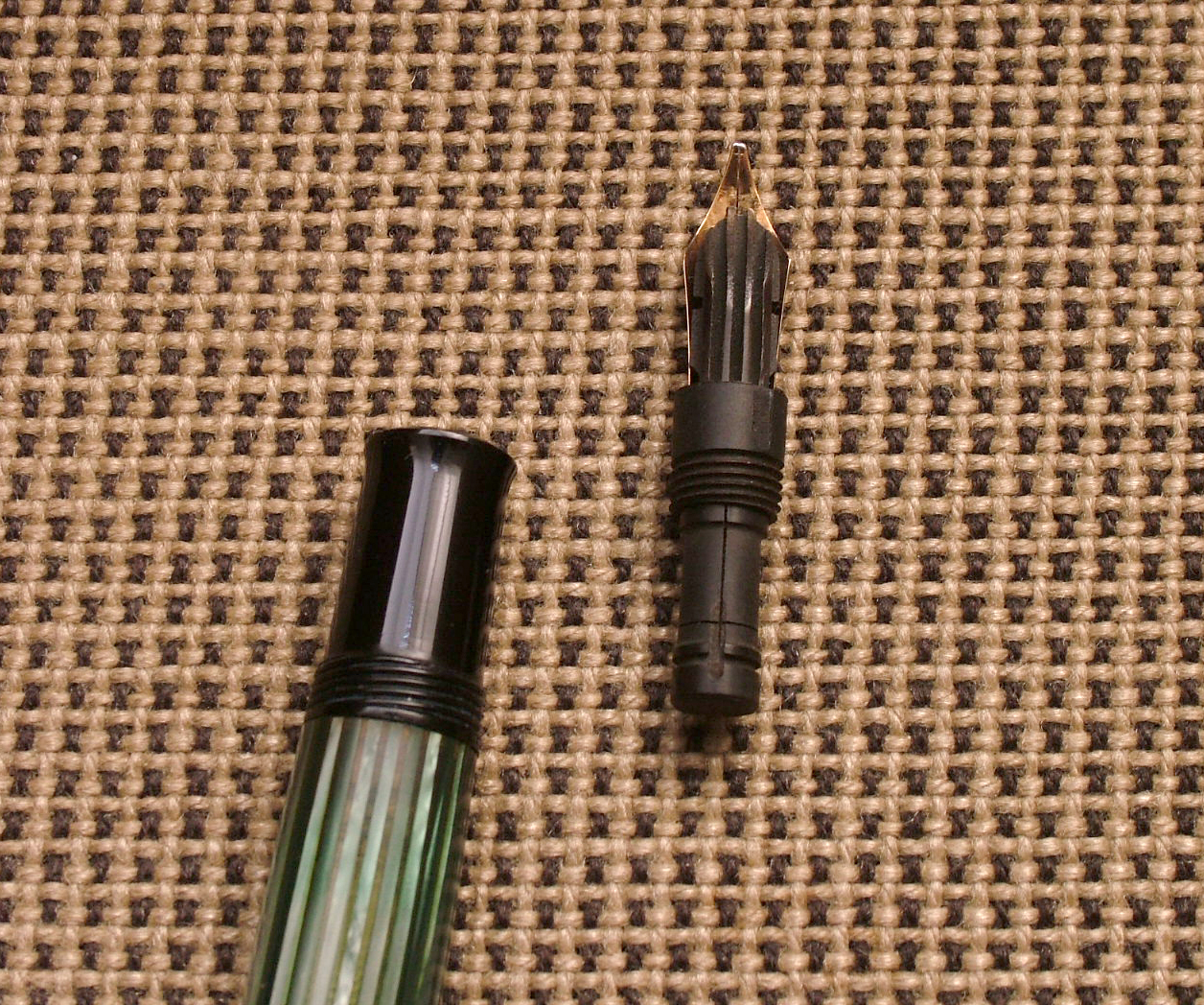 'Per smontare la Pelikan 140 bisogna iniziare smontando il pennino ed il gruppo alimentatore, che è avvitato nella sezione.