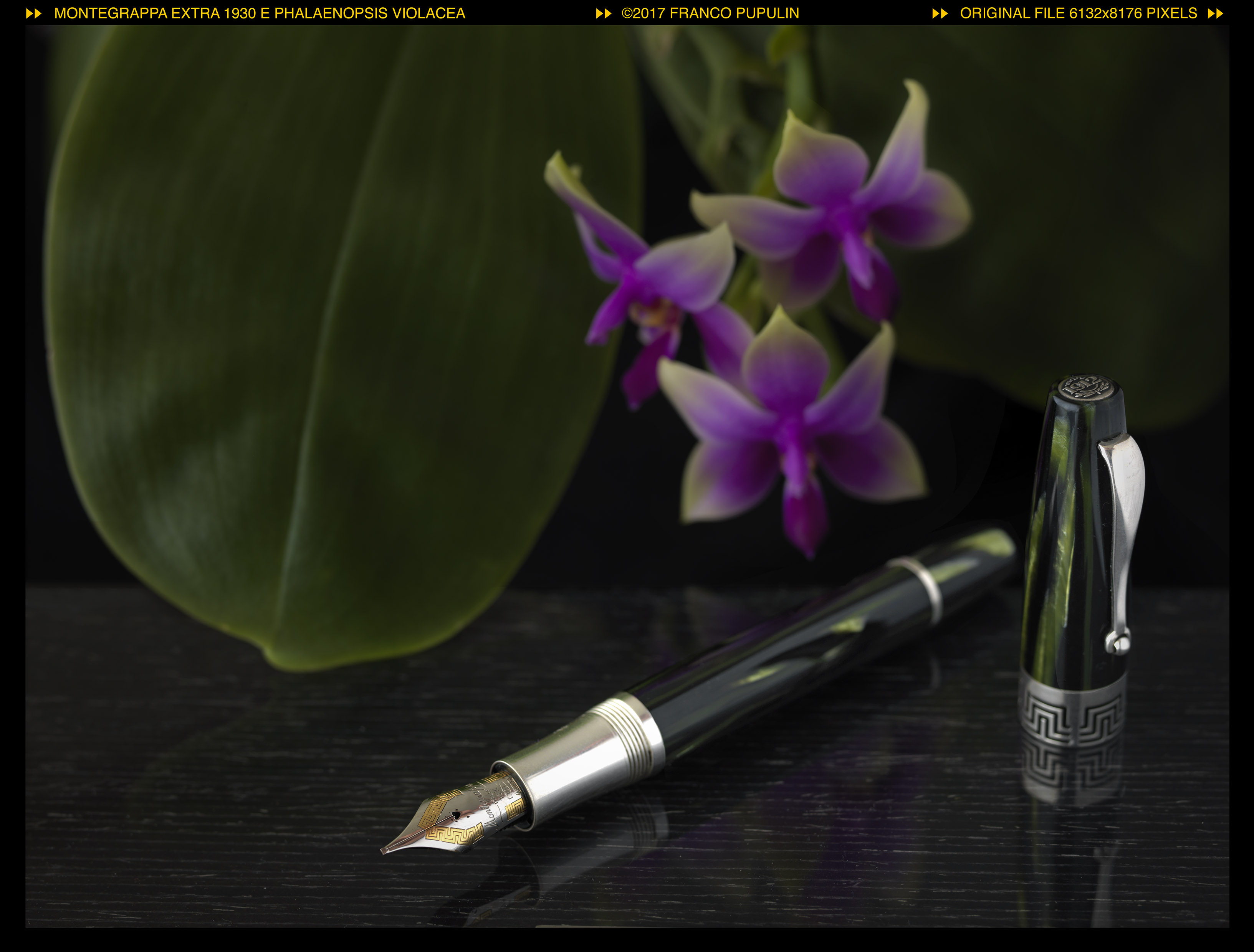 Qui l’ho fotografata con il mio “bambù” da scrittura, la Montegrappa Extra 1930 in celluloide nero bambù, che si sposa alla perfezione con l’immagine di una oscura giungla malese dalla quale potrebbero improvvisamente emergere dei Thugs con i loro kriss, i pugnali malesi con la lama serpeggiante…