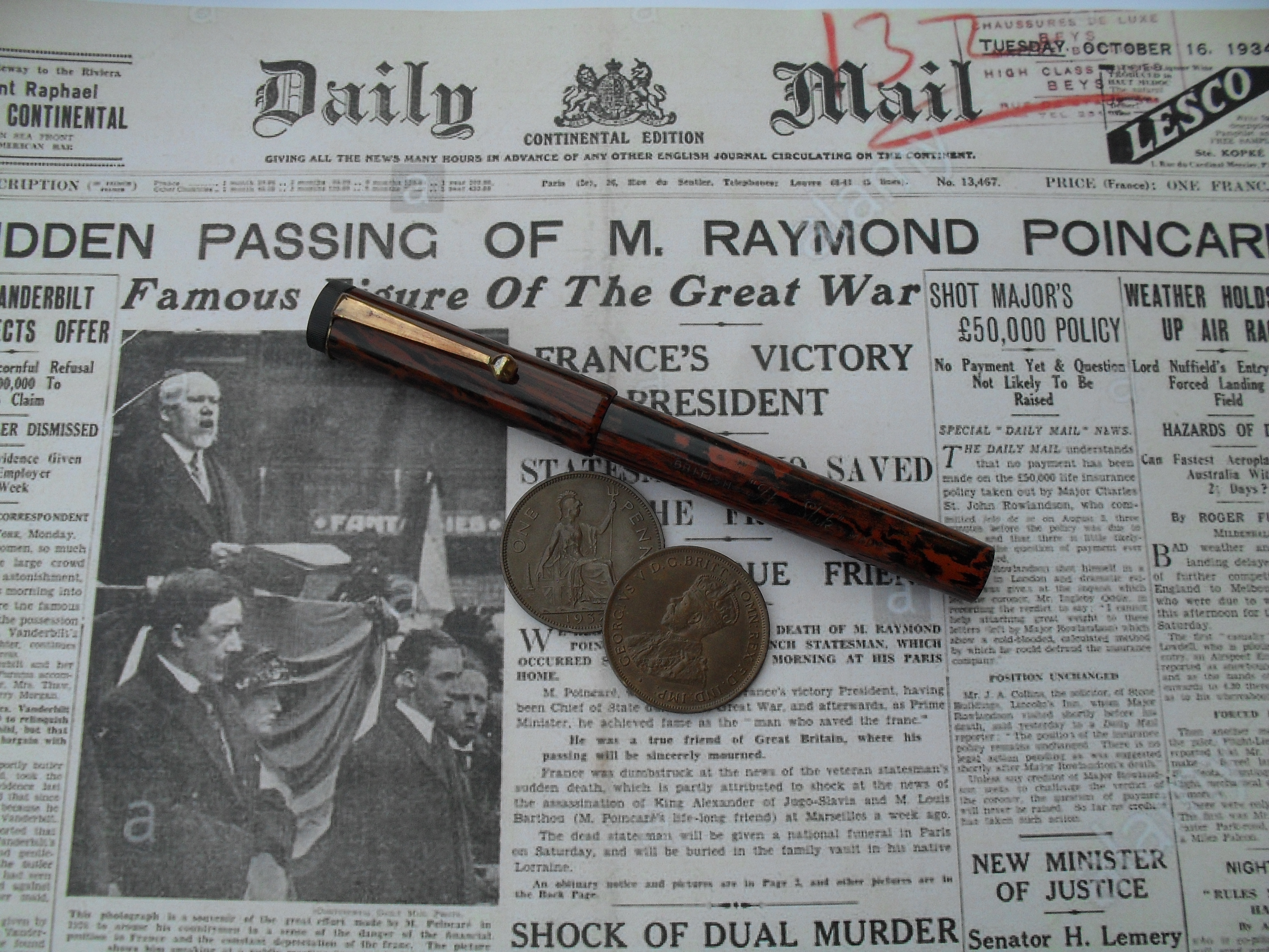 Comincio dall’ultima domanda: sì, ho stampato io la pagina di giornale. Nonostante gli evidenti marchi estranei mi sembra una buona ambientazione, anche perché quella pagina è proprio del 1934.