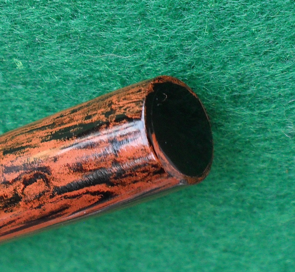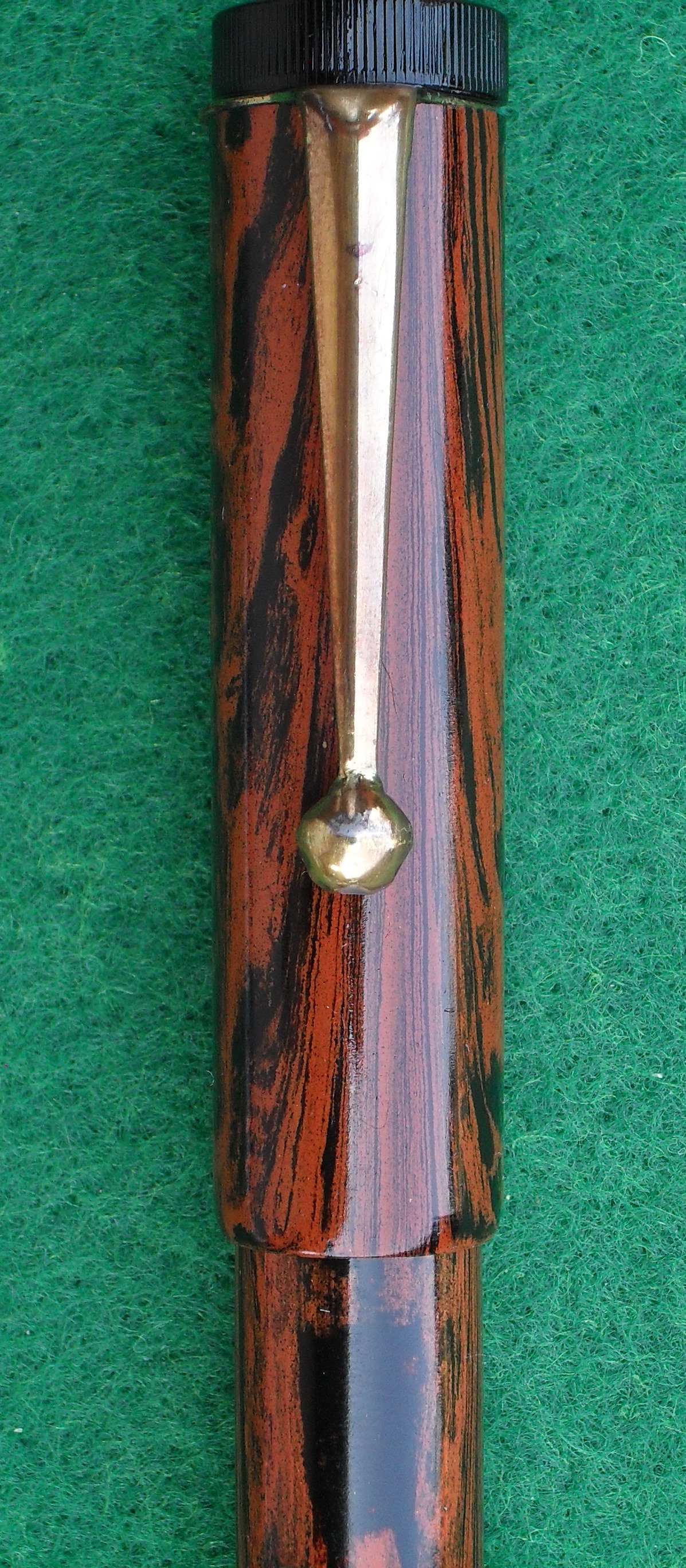 Corpo e cappuccio sono nella classica ebanite rossiccia “a corteccia”, o “woodgrain” come dicono gli inglesi, piacevole alla vista ed al tatto.