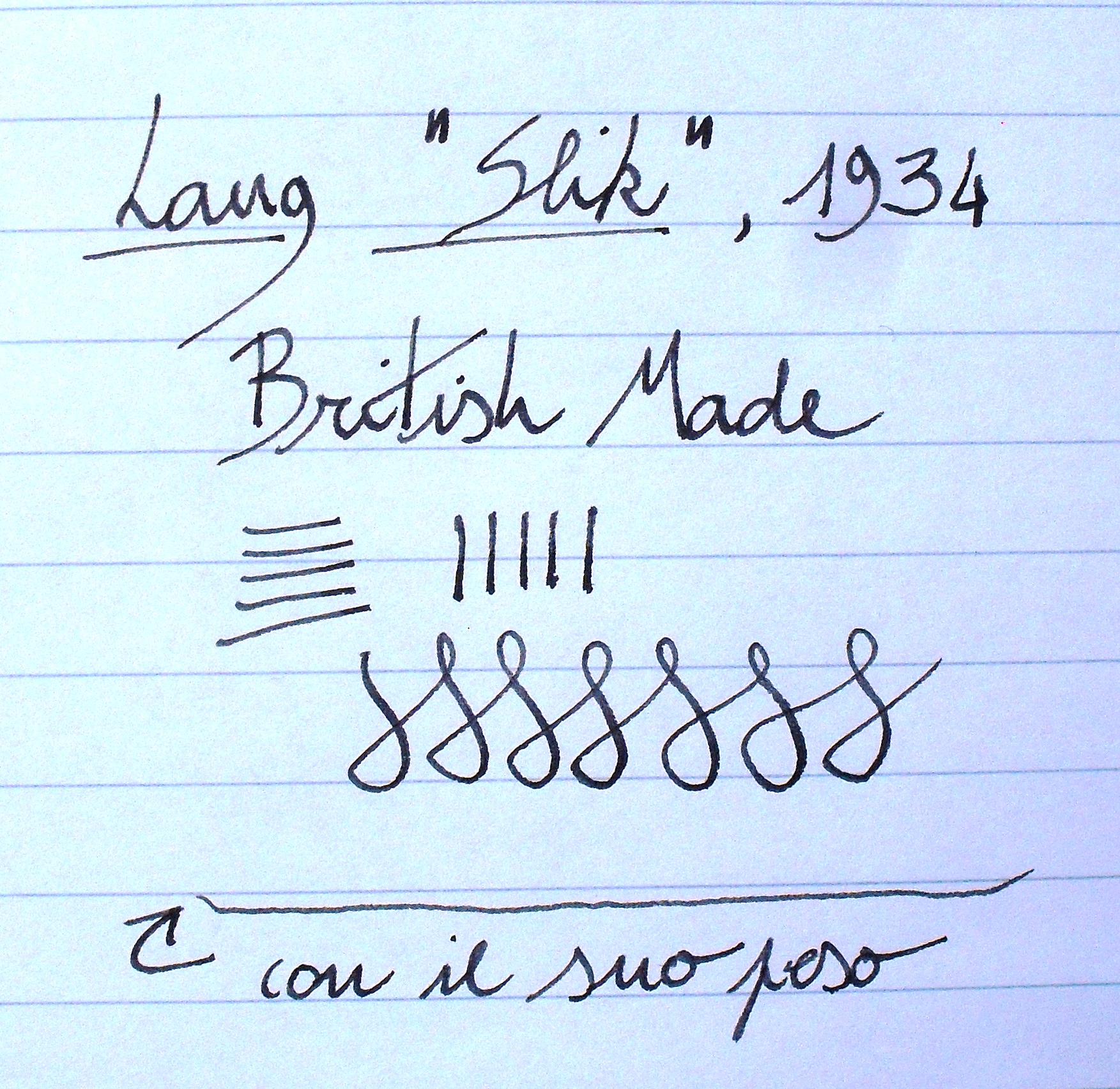 Nonostante non siano conosciuti per la loro flessibilità, i pennini prodotti da Lang, che sin dal 1905 fece la scelta di produrre tutto direttamente, partendo dalla materia prima, erano davvero d’ottima qualità e furono richiesti anche da altri marchi, esterni a quelli di proprietà del gruppo di Liverpool.