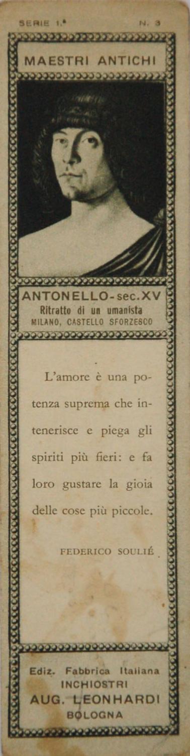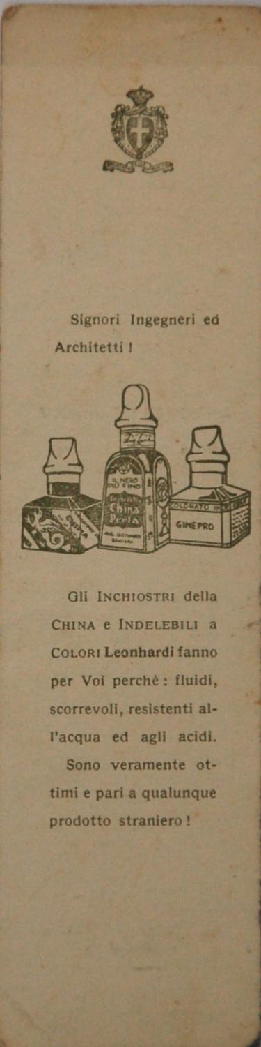 Traccia (forse sbagliata): Bologna. Leonardi è l'italianizzazione (siamo nel ventennio) di Leonhardi, fondata da Emil August Eduard Lehonardi (1826-1905. L'idea mi è venuta vedendo il segnalibri che ho trovato in rete ("Inchiostri Aug. Lehonardi Bologna"). Difficile che esistano negli stessi anni due fabbriche di inchiostri con nomi praticamente identici (difficile, ma non impossibile, peraltro).