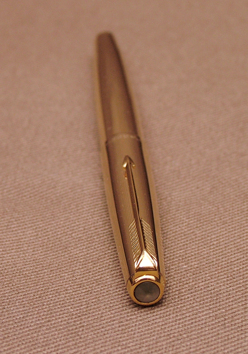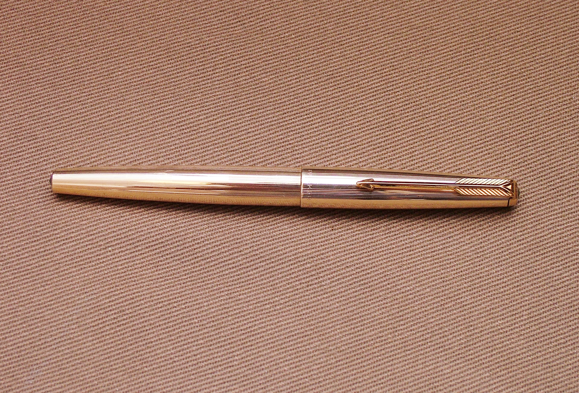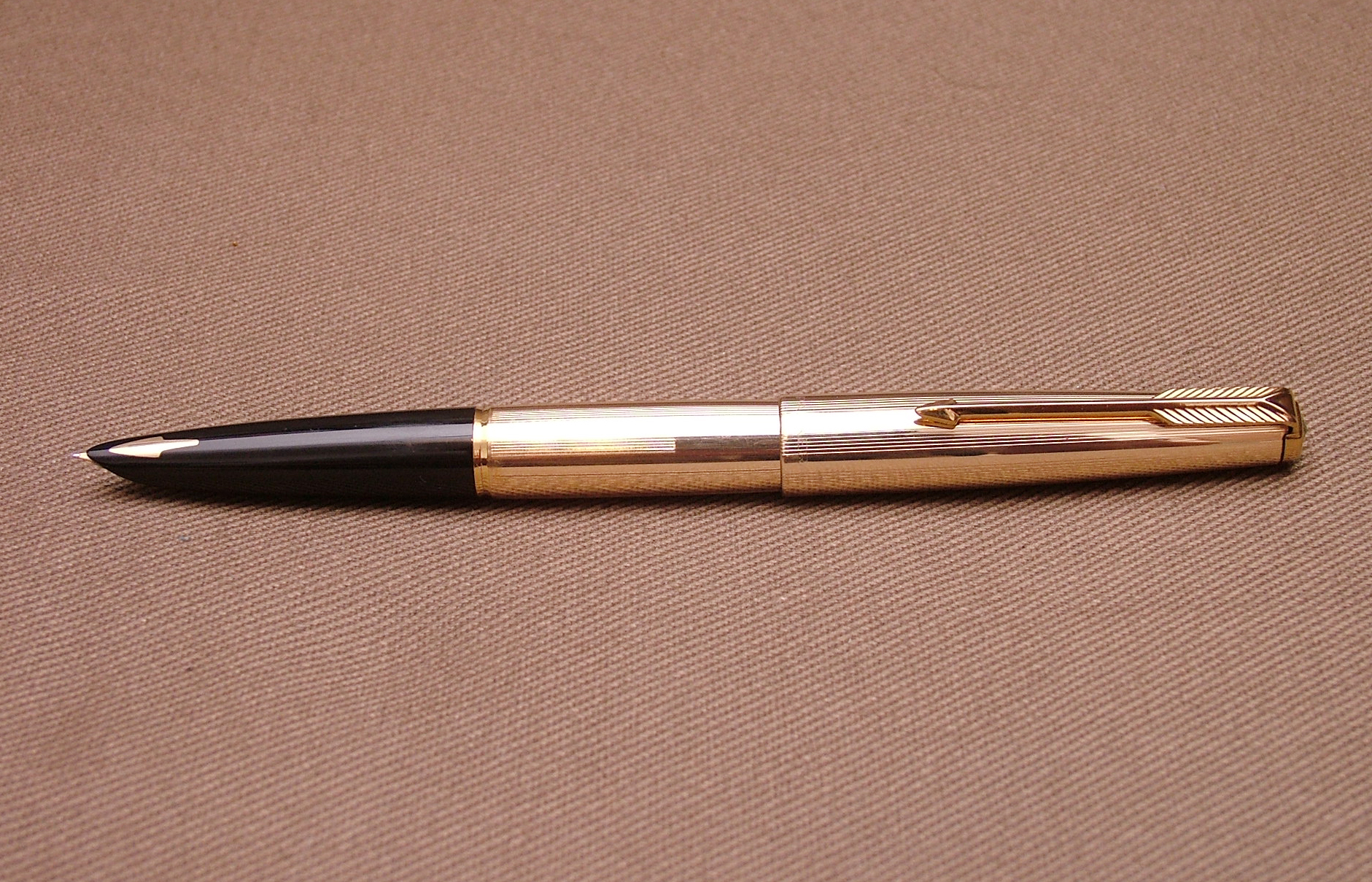 Parker 61 laminata oro perfetta, è sempre un piacere tenere una penna in queste condizioni, poi la 61 ha il particolarissimo sistema di carica a capillarità, è vero non carica molto rispetto alla vacumatic o l'aereometrica, ma il suo sistema di carica è particolare.