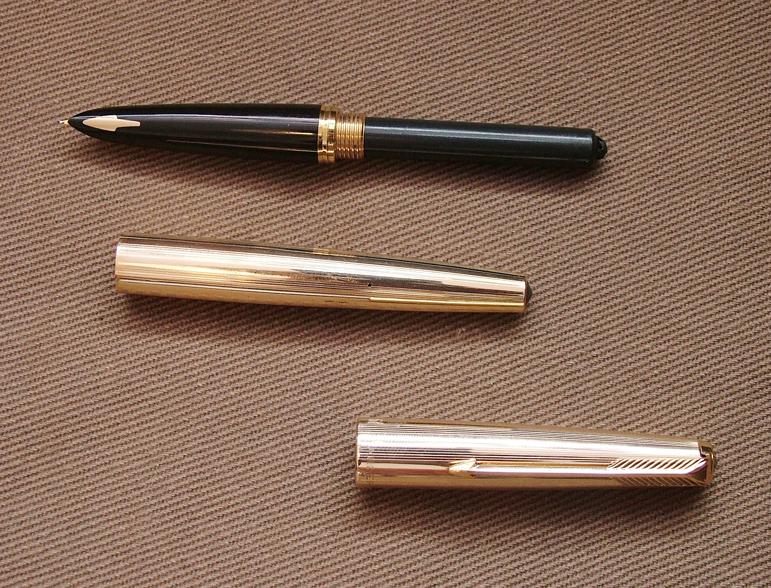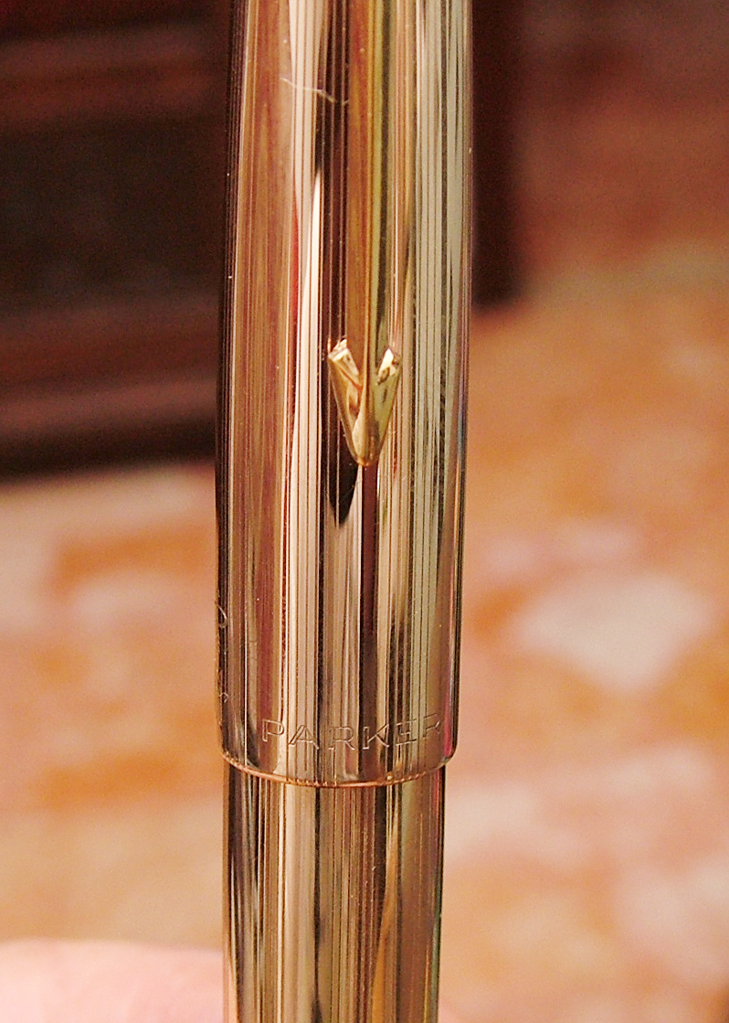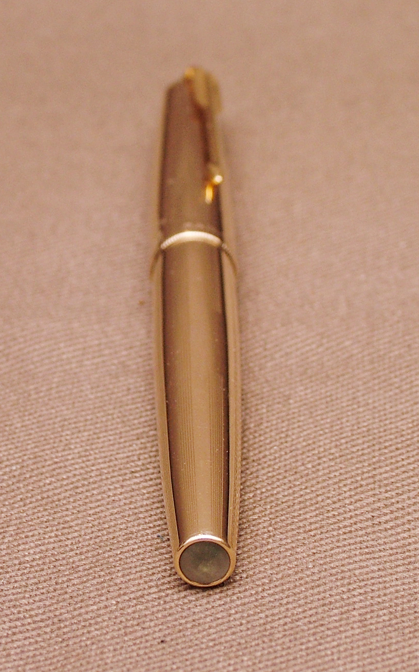 Parker 61 laminata oro perfetta, è sempre un piacere tenere una penna in queste condizioni, poi la 61 ha il particolarissimo sistema di carica a capillarità, è vero non carica molto rispetto alla vacumatic o l'aereometrica, ma il suo sistema di carica è particolare.