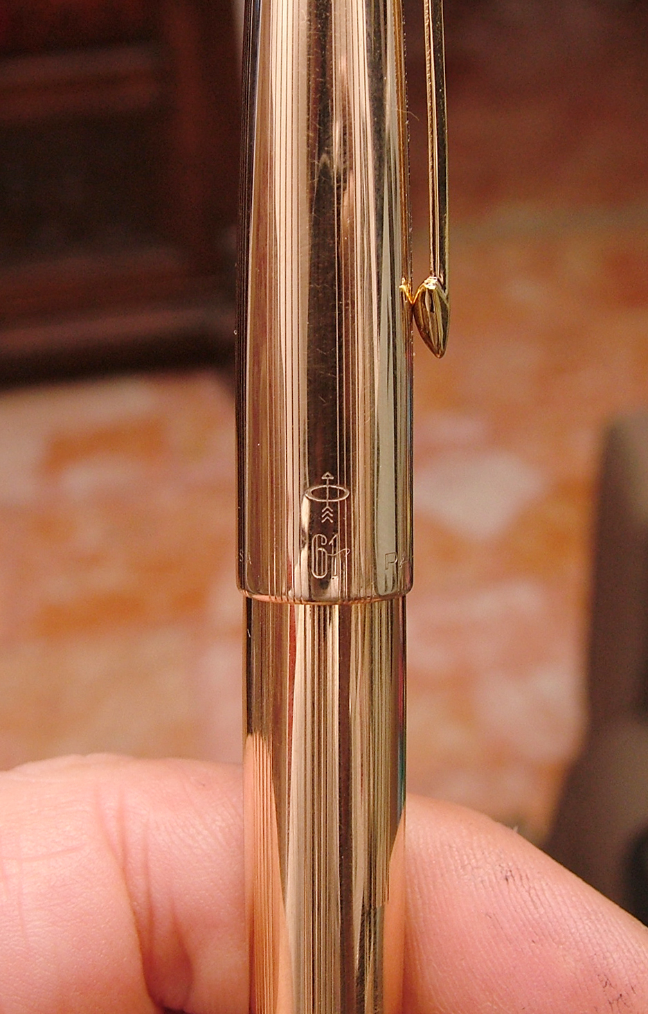 Ora mostro le foto del pennino e delle scritte sul cappuccio , l'unica che non sono riuscito a fotografare è la P maiuscola sopra lo lo scudo con inscritto ,1/10 (laminatura spessa un decimo di millimetro),12 K e GF (gold Filled)