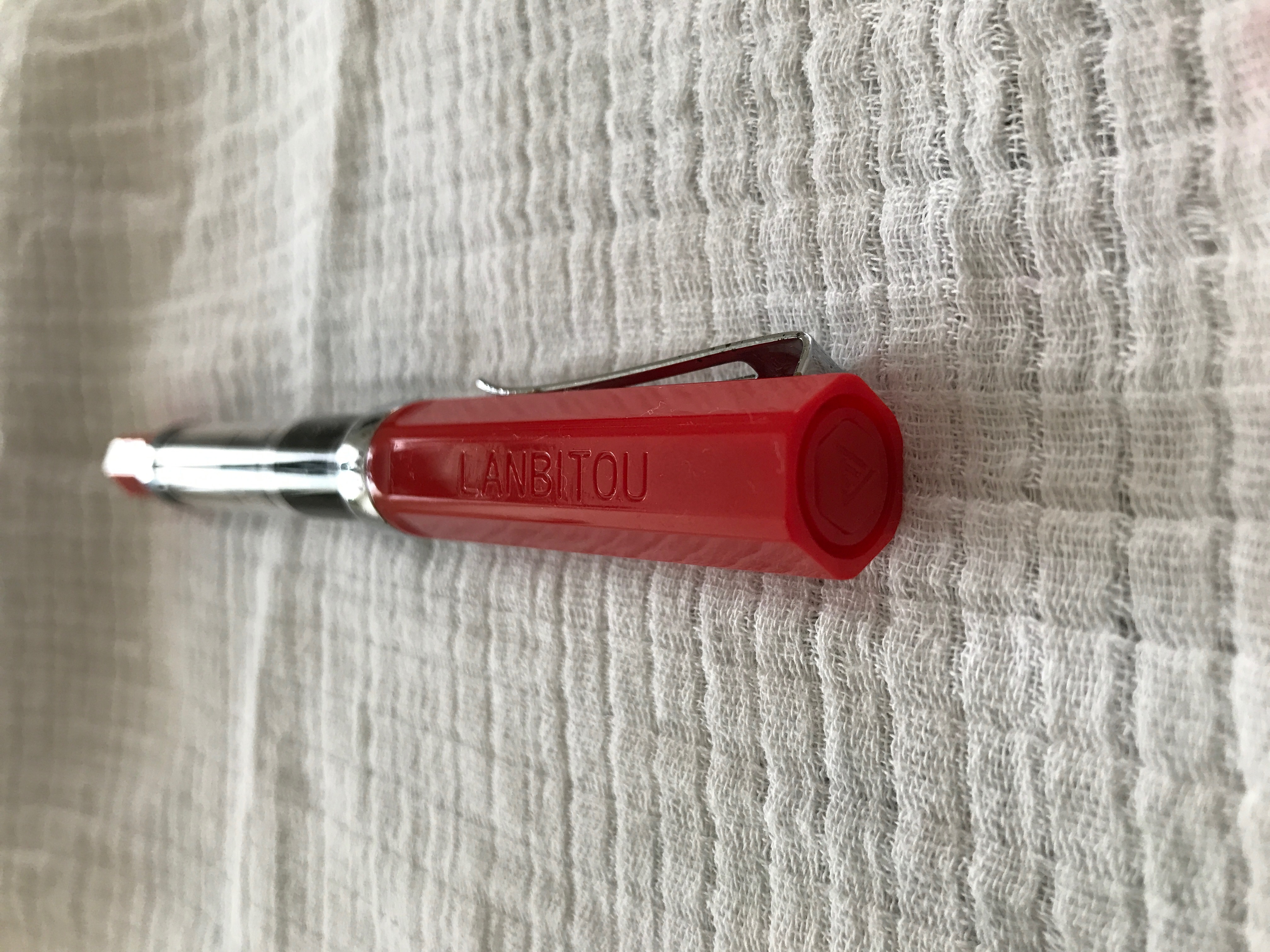 La Lanbitou 3059 è - come è senza alcun dubbio visibile - un clone abbastanza spudorato della ben più famosa TWSBI ECO, di cui riprende pressoché pedissequamente il design e le forme. Vi sono tuttavia alcuni aspetti per cui differisce dall'originale da cui trae spunto. Uno di questi è il pennino, che riprende la forma del pennino della Lamy Safari. A differenza della TWSBI ECO, il gruppo pistone della Lanbitou 3059 è completamente smontabile senza la necessità di una chiave: è infatti sufficiente svitare la veretta che sormonta il fondello girevole per accedervi ed eseguire la manutenzione. La capacità del serbatoio è di ca. 2,5 mm di inchiostro. La penna è arrivata al mio indirizzo Paesi Bassi in 8 giorni.