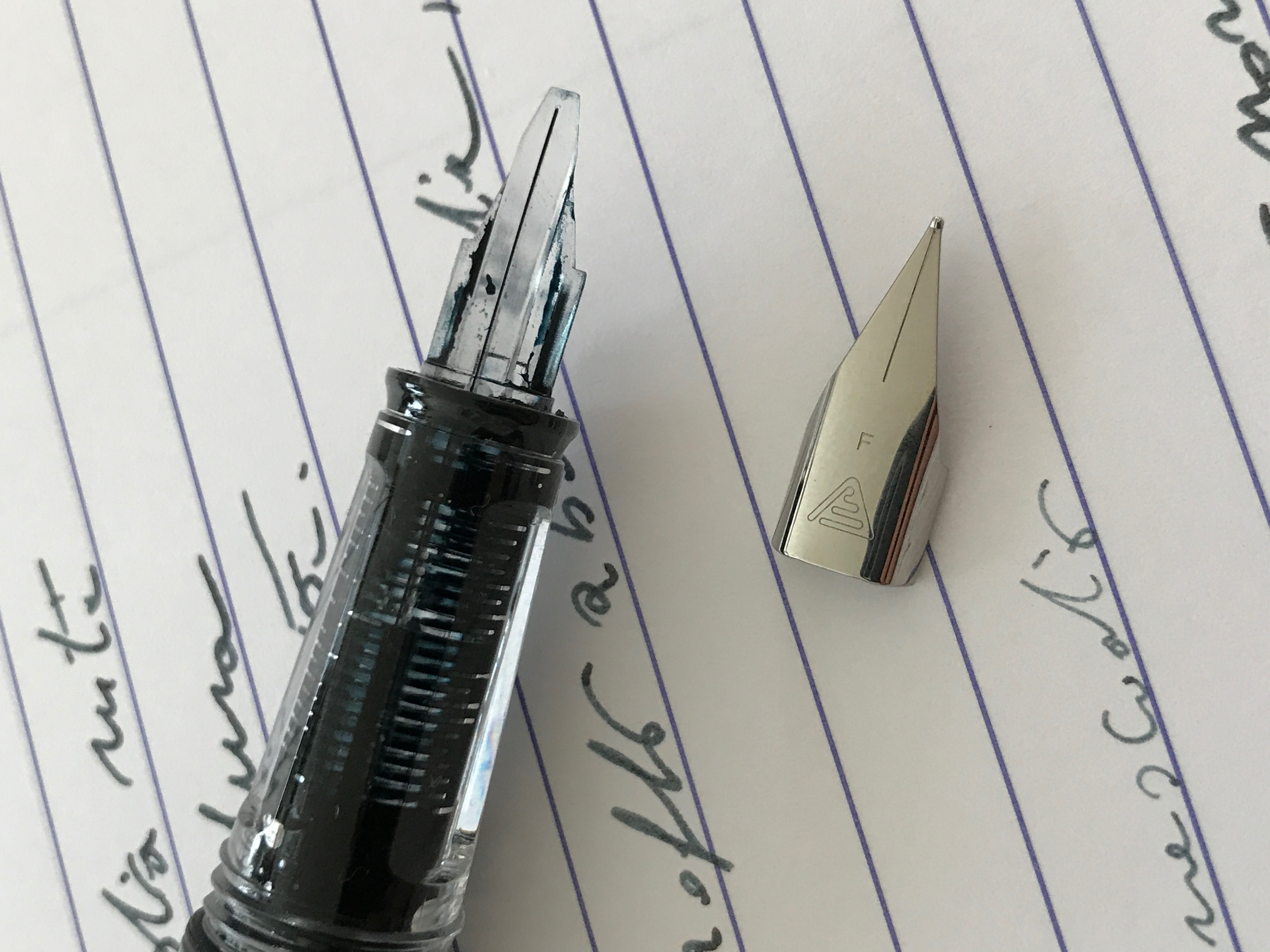 Il fatto che sia possibile usare i pennini Lamy schiude un mondo di possibilità, anche se devo dire che il pennino F di serie è scorrevolissimo. A me piacciono però tratti più larghi.