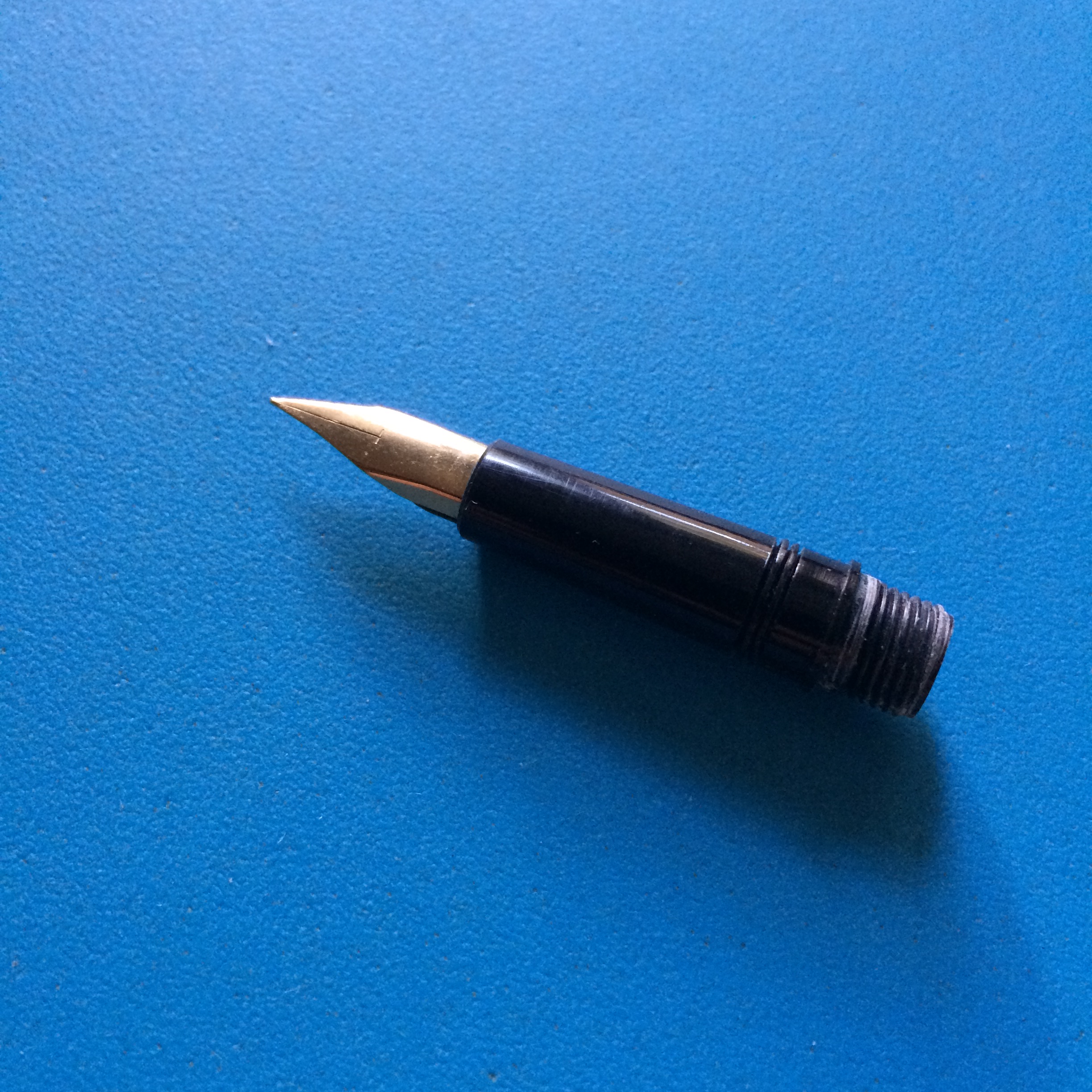Il pennino non reca alcuna iscrizione ed è caratterizzato dalla mancanza del foro, sostituito da un piccolo taglio orizzontale all'inizio dei rebbi.