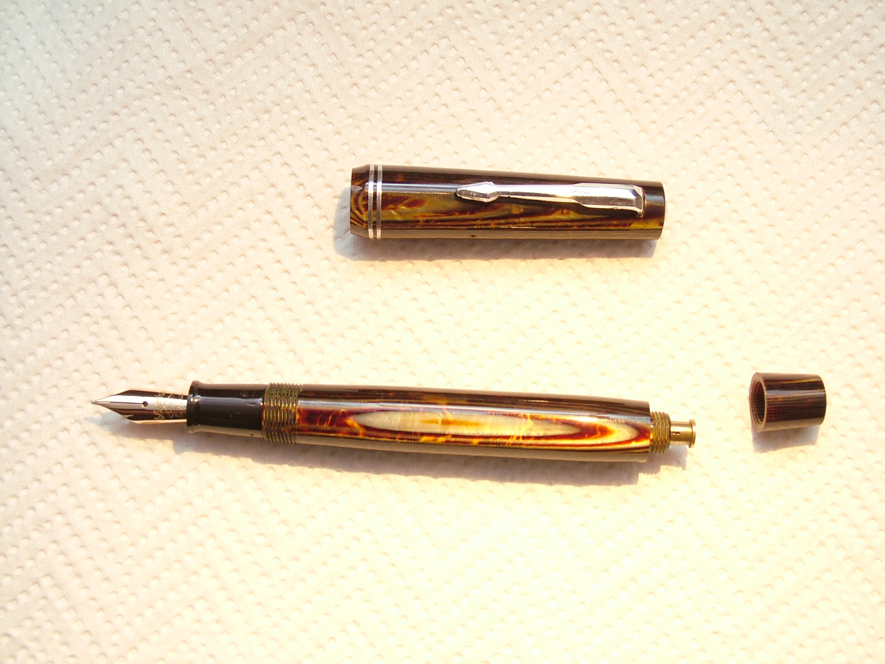 Ciao Sergio, queste silografiche prima degli anni '50 sono veramente belle e di ottima qualità, sia le Columbus Extra che le Columbus , nonostante siano una linea più economica, ma il minor costo non era dovuto ai materiali ed alla lavorazione, ma al sistema di carica più semplice come levetta laterale o pulsante di fondo, mentre le altre in genere avevano sistemi di carica più sofisticati come siringa rovesciata, levetta posteriore al posto del semplice pulsantino ecc...