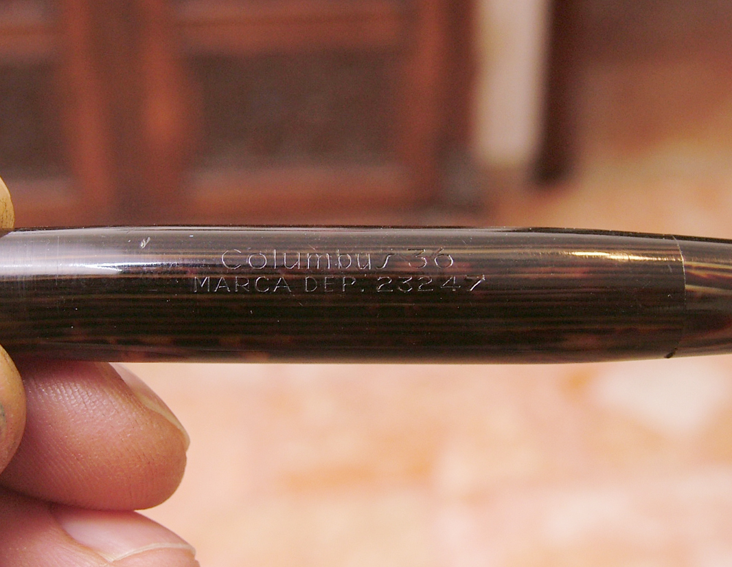 la prima serie delle Columbus 3x era con varie finiture, una fascetta alta liscia, 2 fascette o con 3 e con la clip a freccia stilizzata come la 25, nel 1940 fu reintrodotto il modello 36 con due verette e clip a freccia liscia,che venne prodotto in bellissime tonalità di celluloide , risalenti sicuramente al decennio precedente.