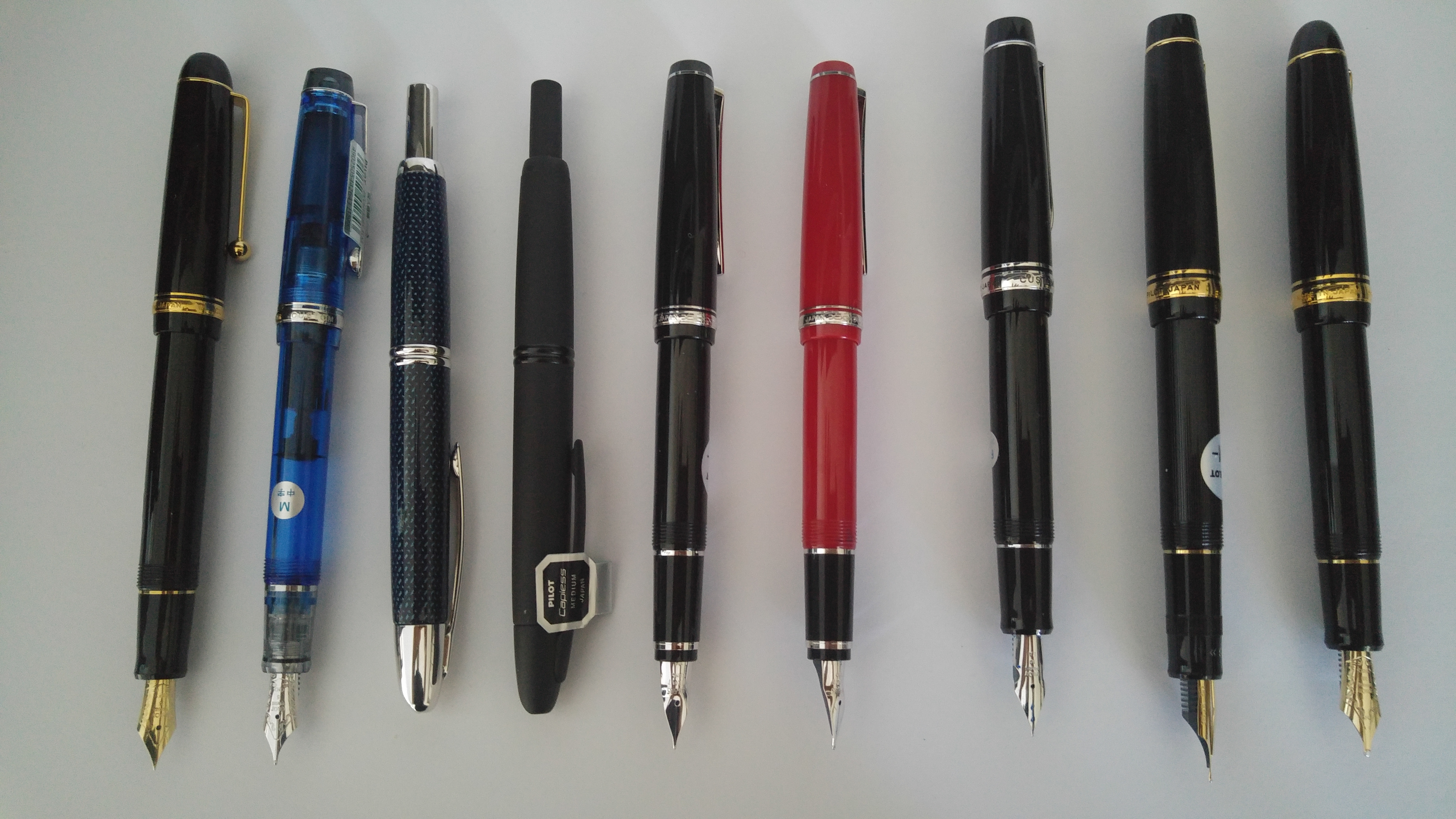 A parte gli scherzi la 91 è praticamente la 92, cambia il tipo di caricamento, una è trasparente mentre l'altra è demostrator. La 743 è praticamente la 823 solo che quest'ultima è demostrator ed il caricamento è vacuum filler. La particolarità della 91 e della 743 (solo le nere però!) è che hanno una scelta, nella gradazione, dei pennini molto più ampia. Diciamo che se dovessi scegliere una Pilot da aggiungere alla tua collezione sarebbe la 845 (ti direi anche la Pilot Urushi, ma fino ad ora l'ho vista solo su internet a catalogo, ed il prezzo se non ricordo male era intorno ai 90000 Yen. Facendo due conti al volo, tra spese di spedizione ed eventuali dazi e tasse doganali, siamo sui 8-900€ circa)