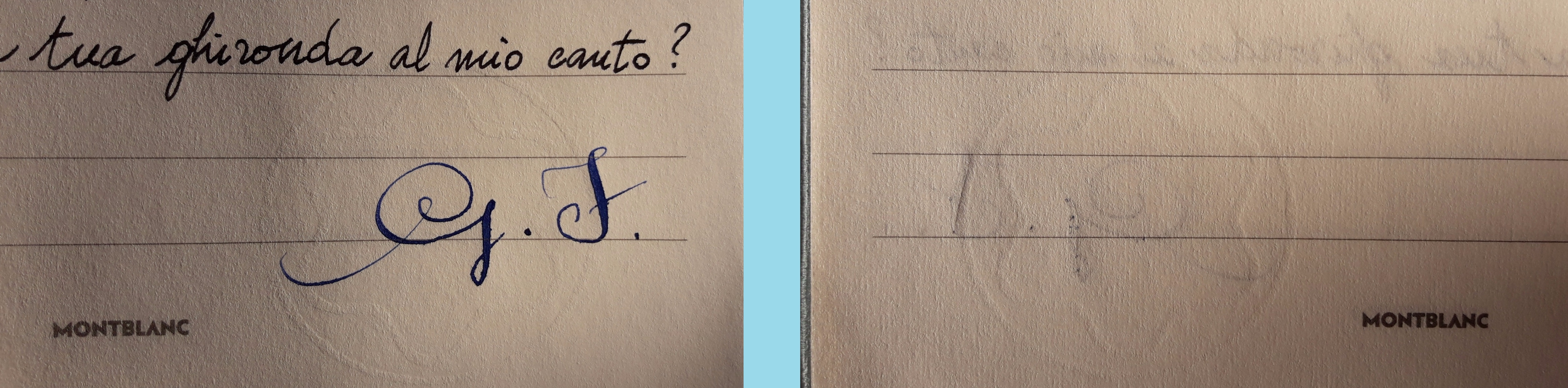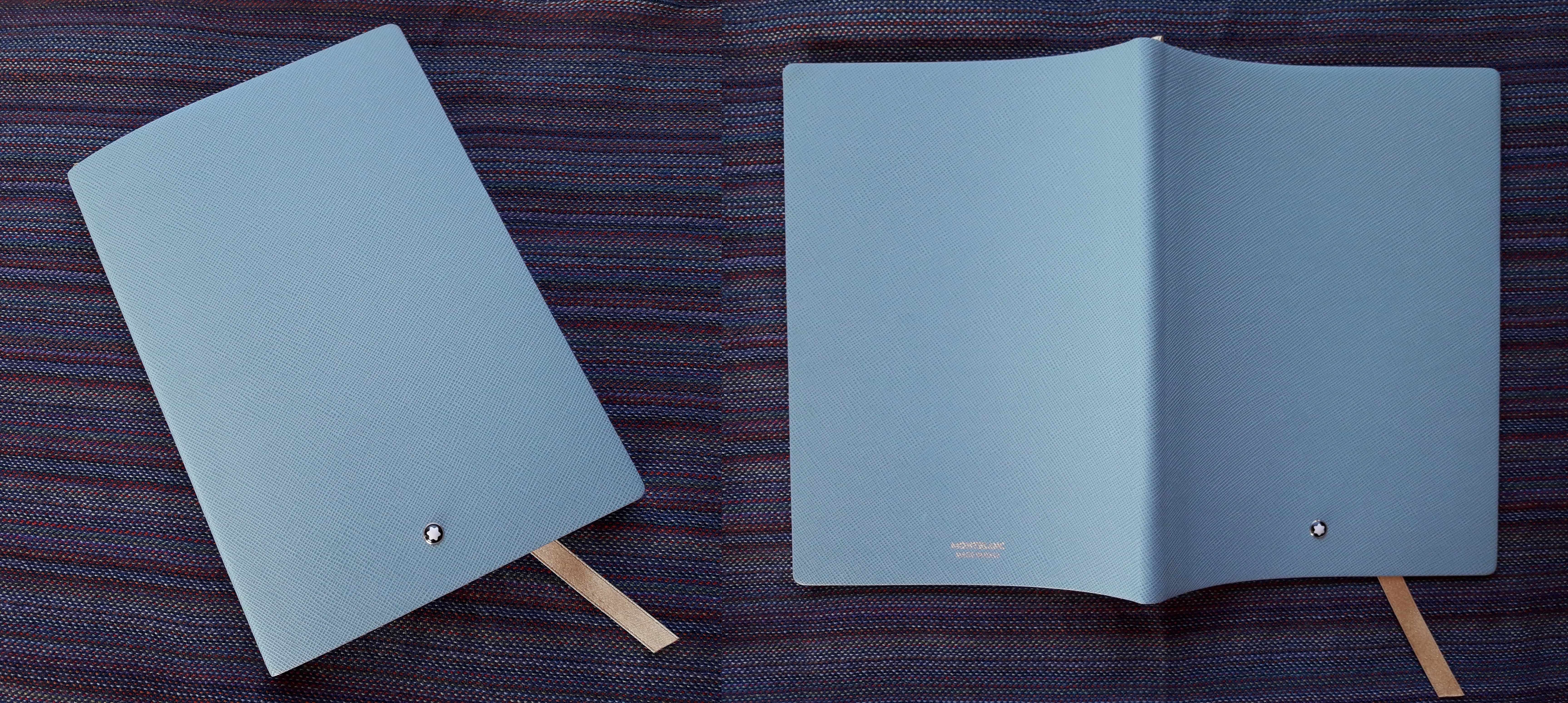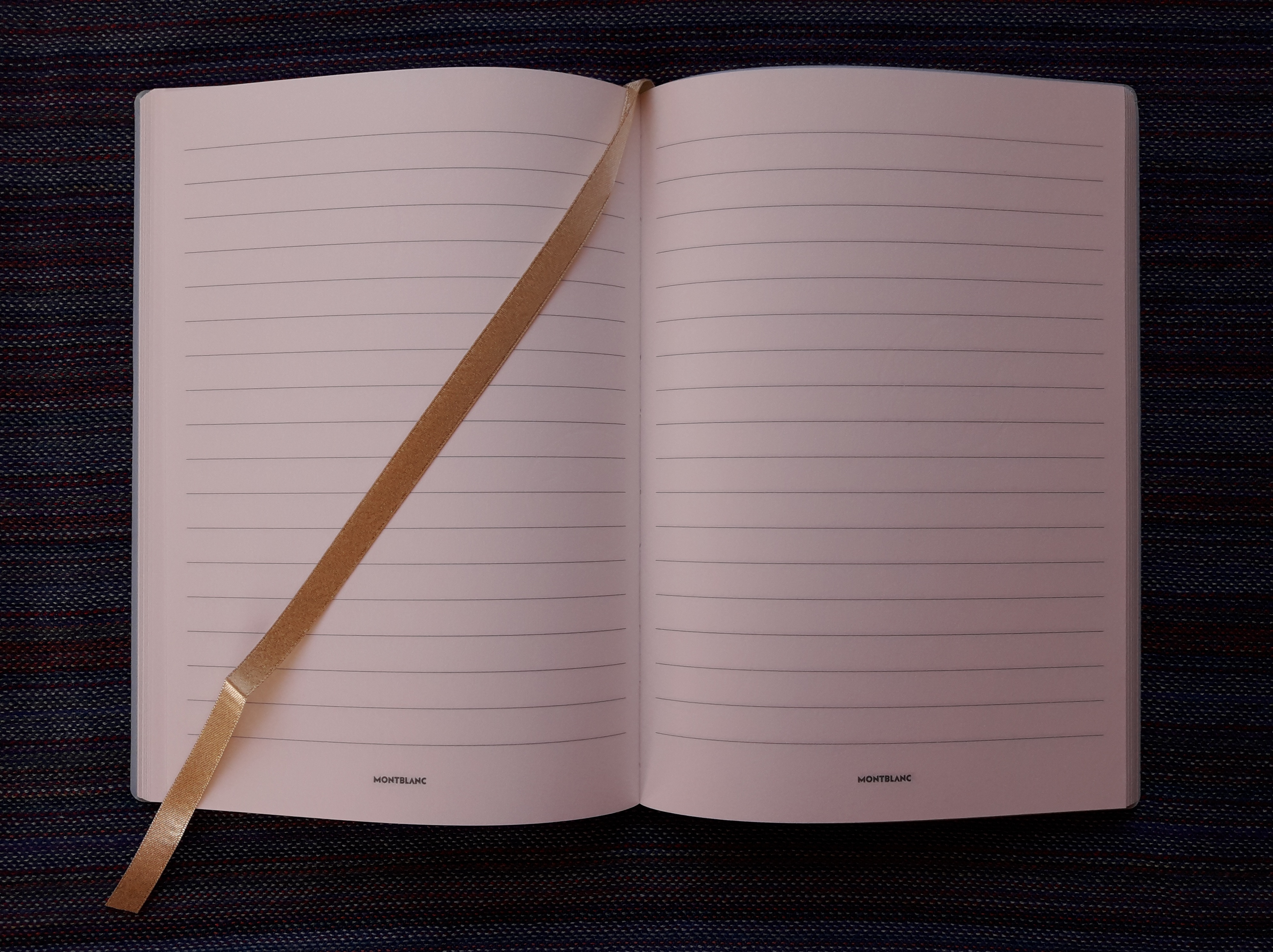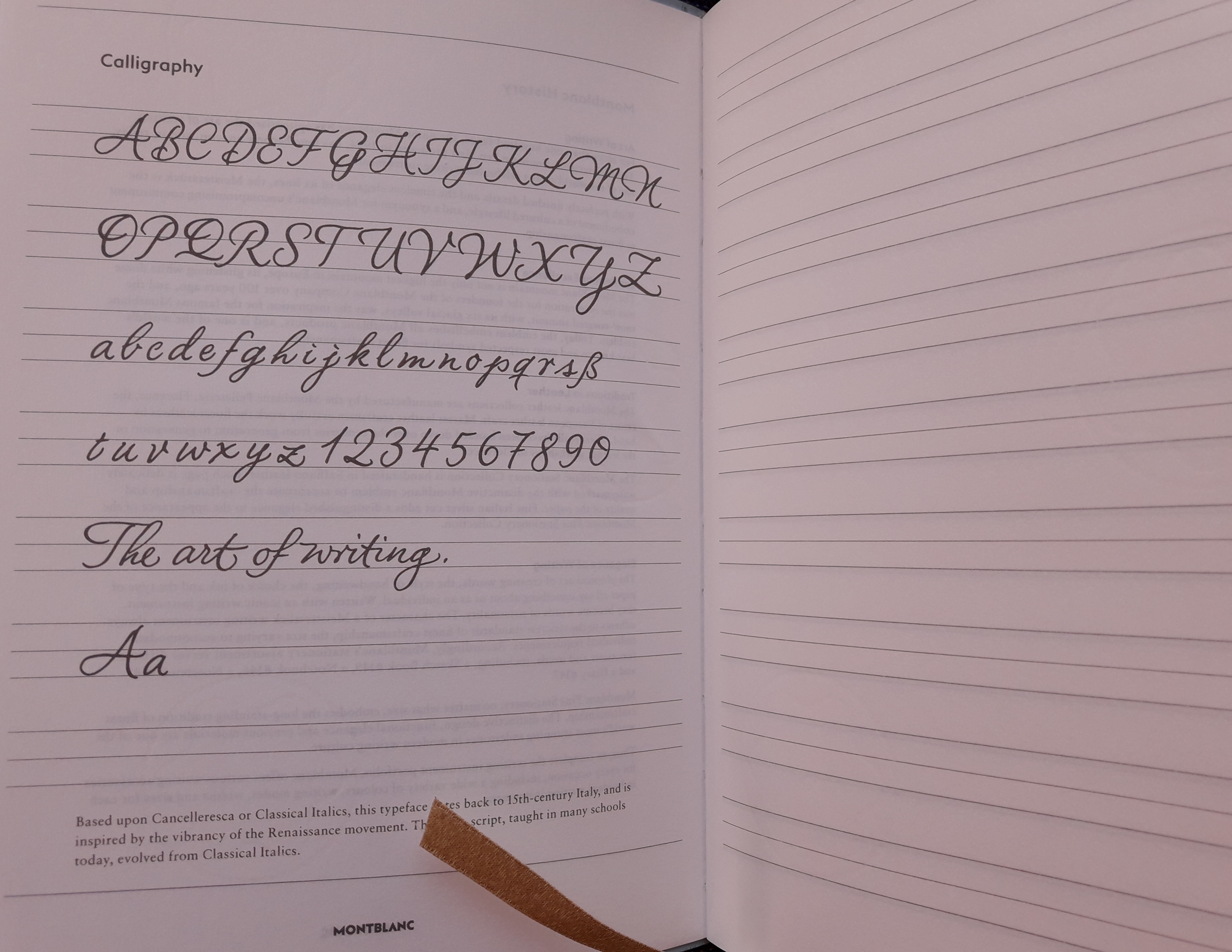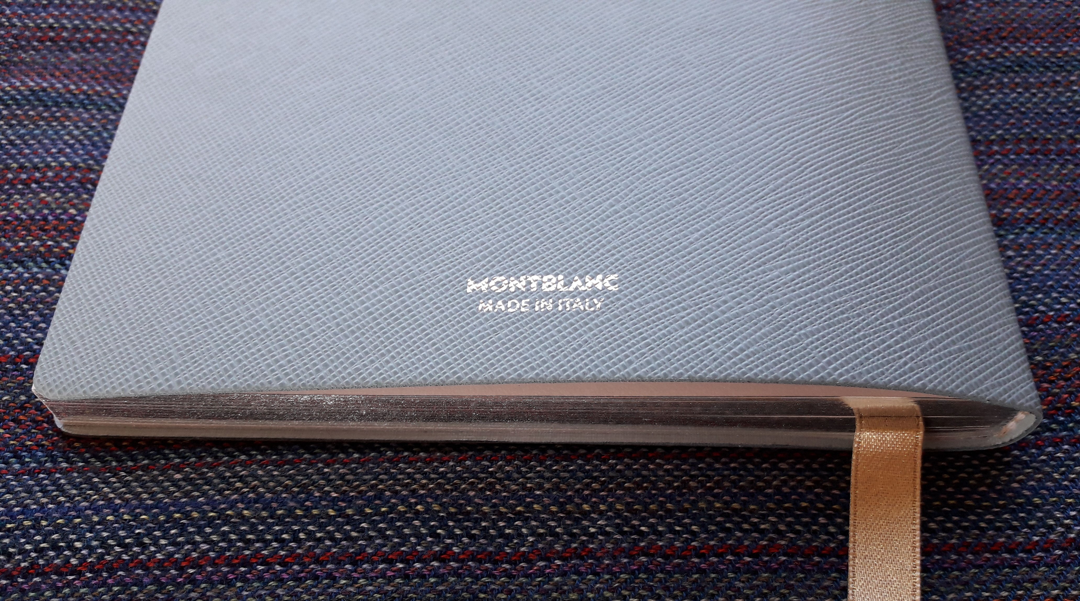 Si apre il quaderno (ché notebook è, e rimane, solo un quaderno), anzi addirittura lo si squaderna per benino, tanto per fare amicizia, e la pelle non fa un plissé… Poi si estrae il segnalibro, - ahimè realizzato in un discutibile color oro al posto del ben più desiderabile argento che avrebbe fatto pendant con il silver cut, i tagli delle pagine - e si comincia a scrivere. Anzi no, si comincia a leggere! perché il Produttore si vuole presentare (in inglese) con una paginetta pomposetta sulla “MontBlanc History” (dove si ammette, tuttavia correttamente, che la linea Meisterstück fu introdotta nel 1924); quindi passa a tessere le lodi della tradizione di eccellenza tutta italiana (e questo dagli algidi amburghesi di oggi non me lo sarei certo aspettato) della pelletteria fiorentina e della carta, anch’essa Made in Italy, così come delle argentature del profilo dei fogli…