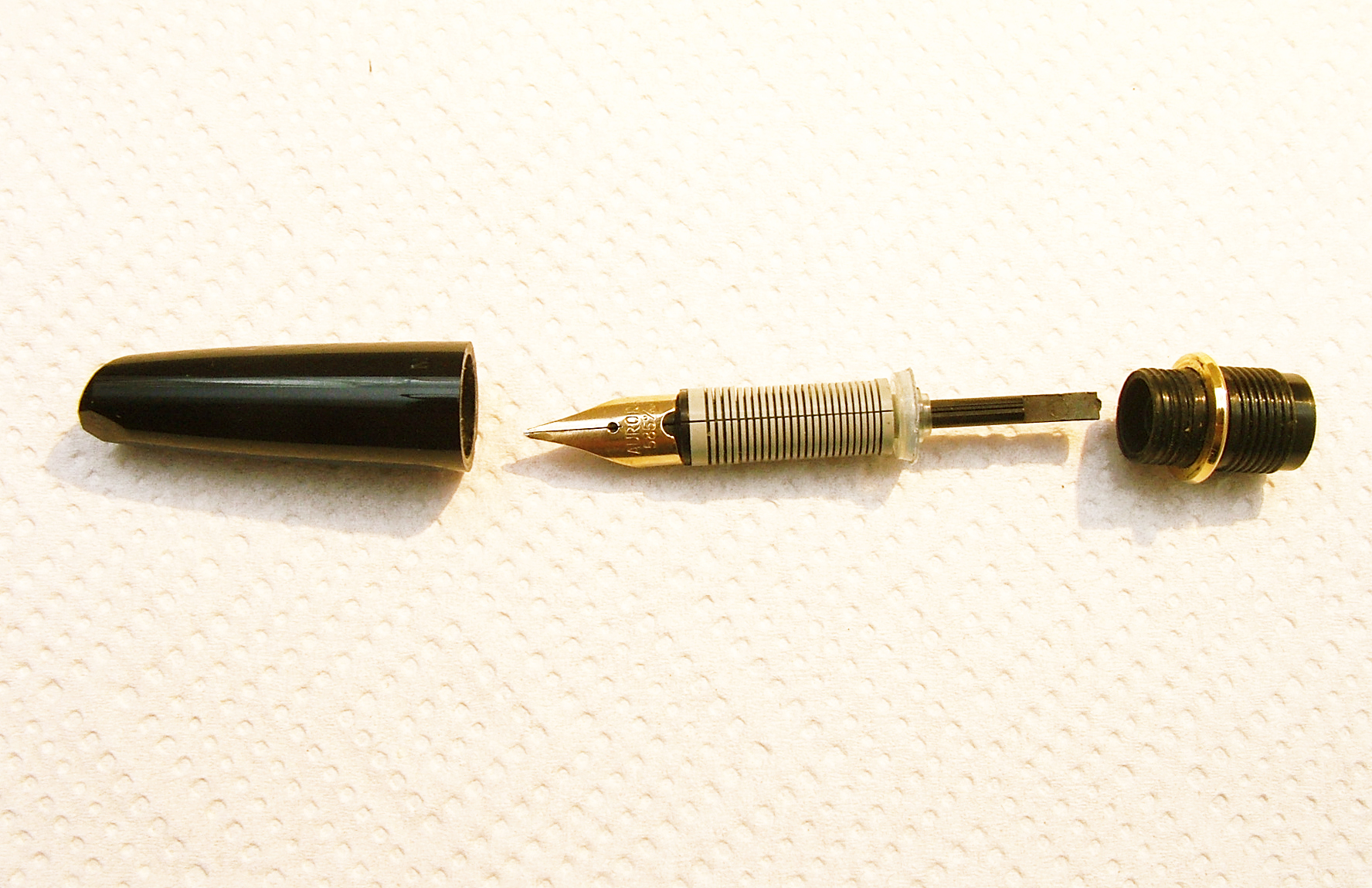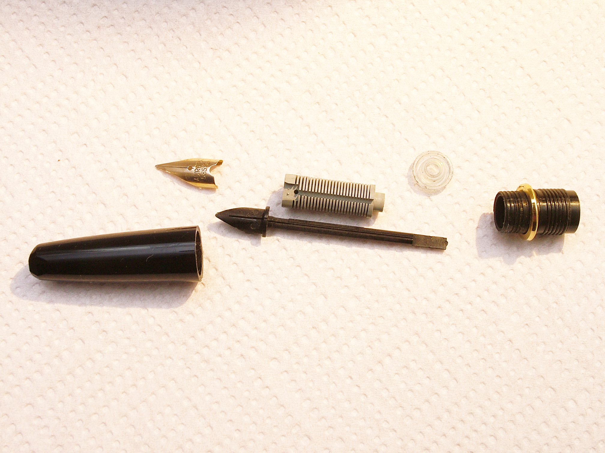 Se vuoi smontare tutto la sezione devi svitare la parte filettata dove si aggancia la catìrtuccia, spingere il pennino all'interno e uscirà posteriormente il gruppo alimentatore/pennino.