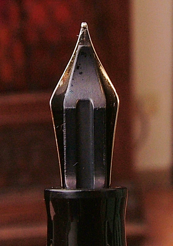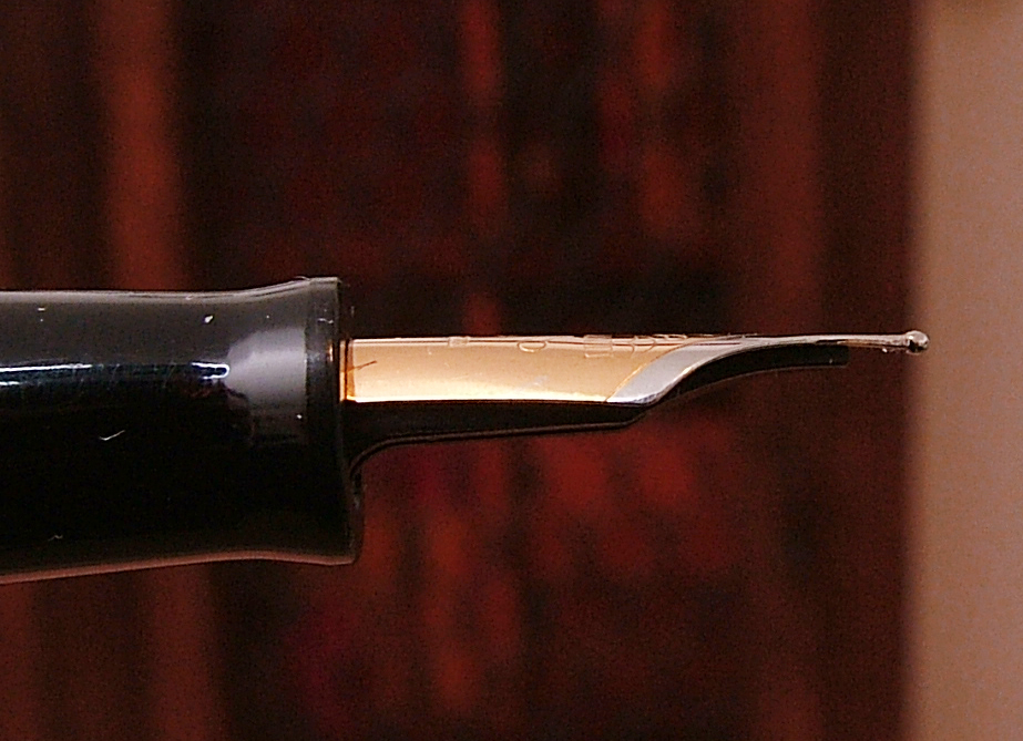 Ciao Max, vado a memoria ma direi che il pennino è il suo originale, credo che non fosse stato messo in oro per non "gravare" troppo sul costo.