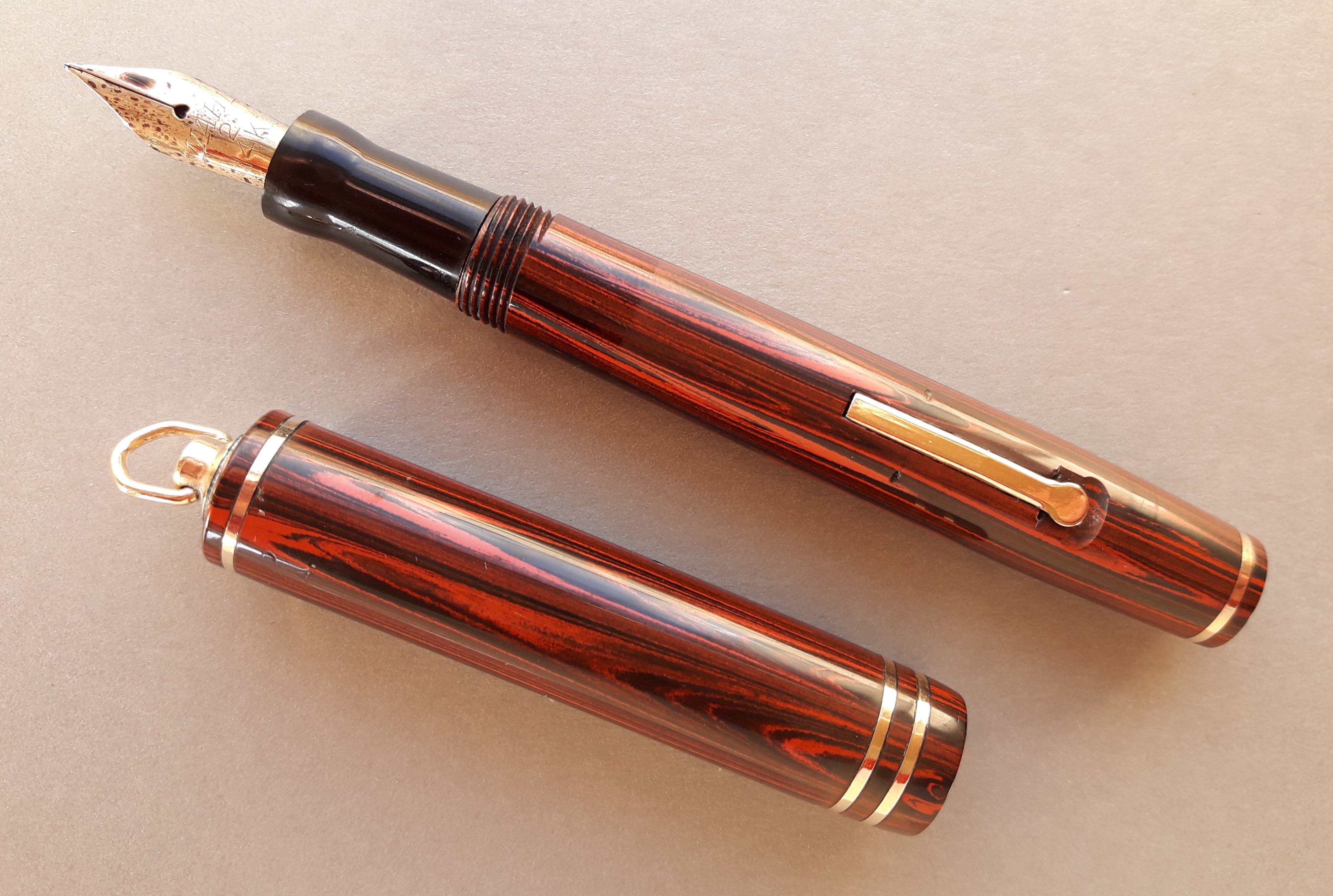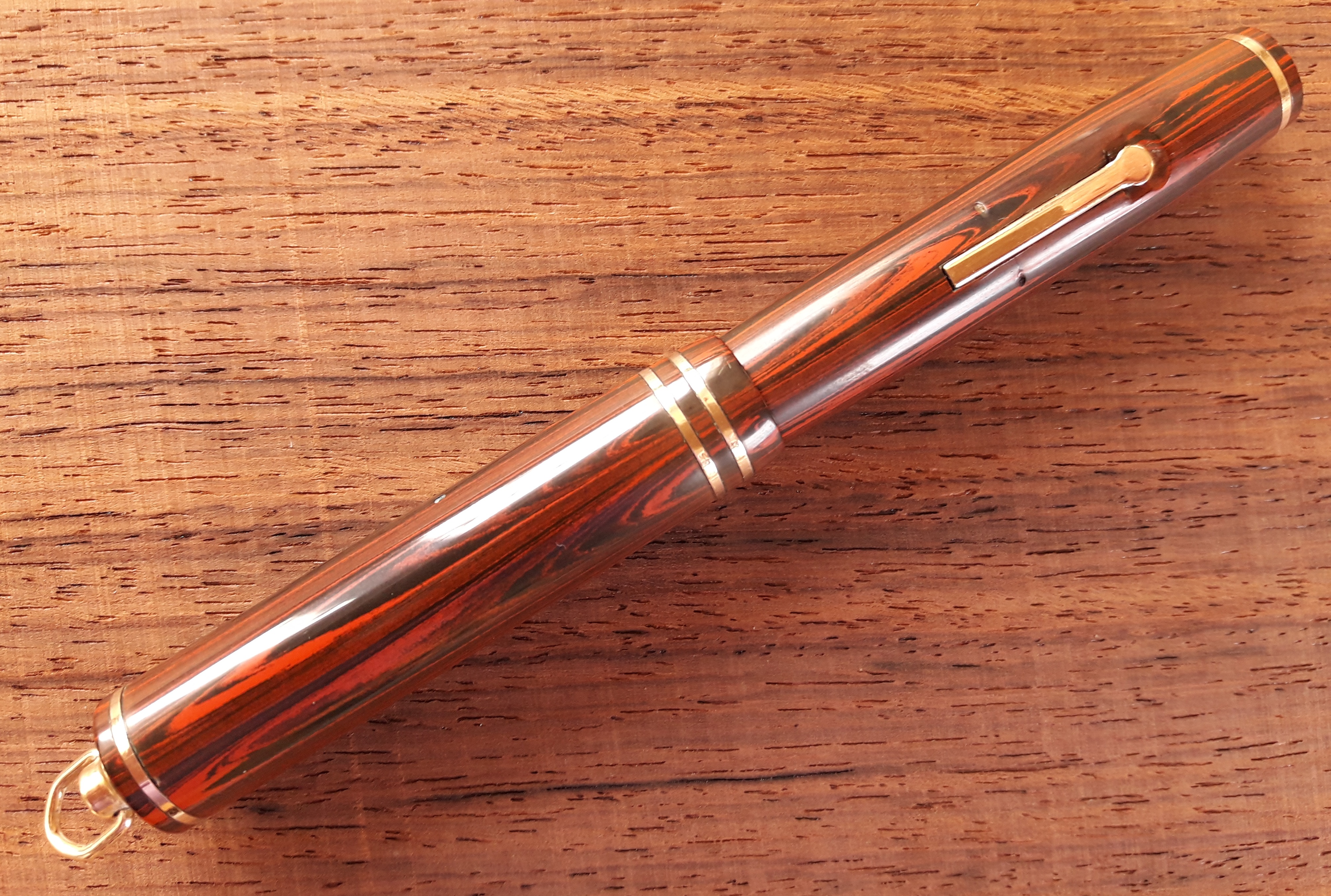 WAHL - EVERSHARP [Signature] taglia lady in ebanite “rosewood”, parti metalliche a vista laminate oro, pennino Wahl in oro 14 Carati, caricamento a levetta, produzione U.S.A. anno 1928.