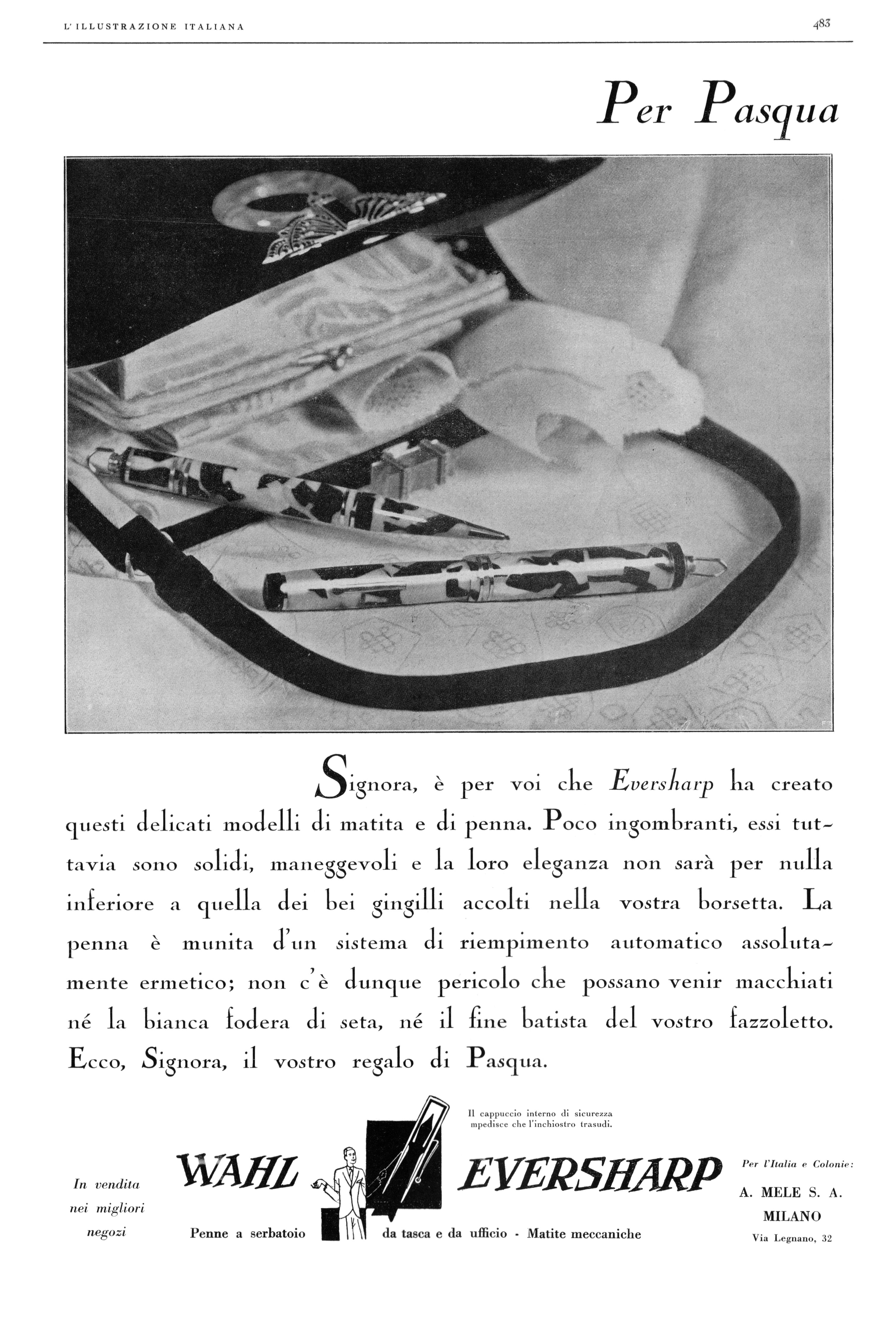 successivamente, per il Natale 1927 la Marca era “WAHL-EVERSHARP Pens and Pencils” ma sulle stilografiche c’era scritto solo WAHL e sulle matite solo EVERSHARP ( https://www.fountainpen.it/File:1927-12 ... lMetal.jpg ), mentre almeno dall’Autunno del 1928, come risulta dall’Eversales (ex “Pen Collectors of America”),